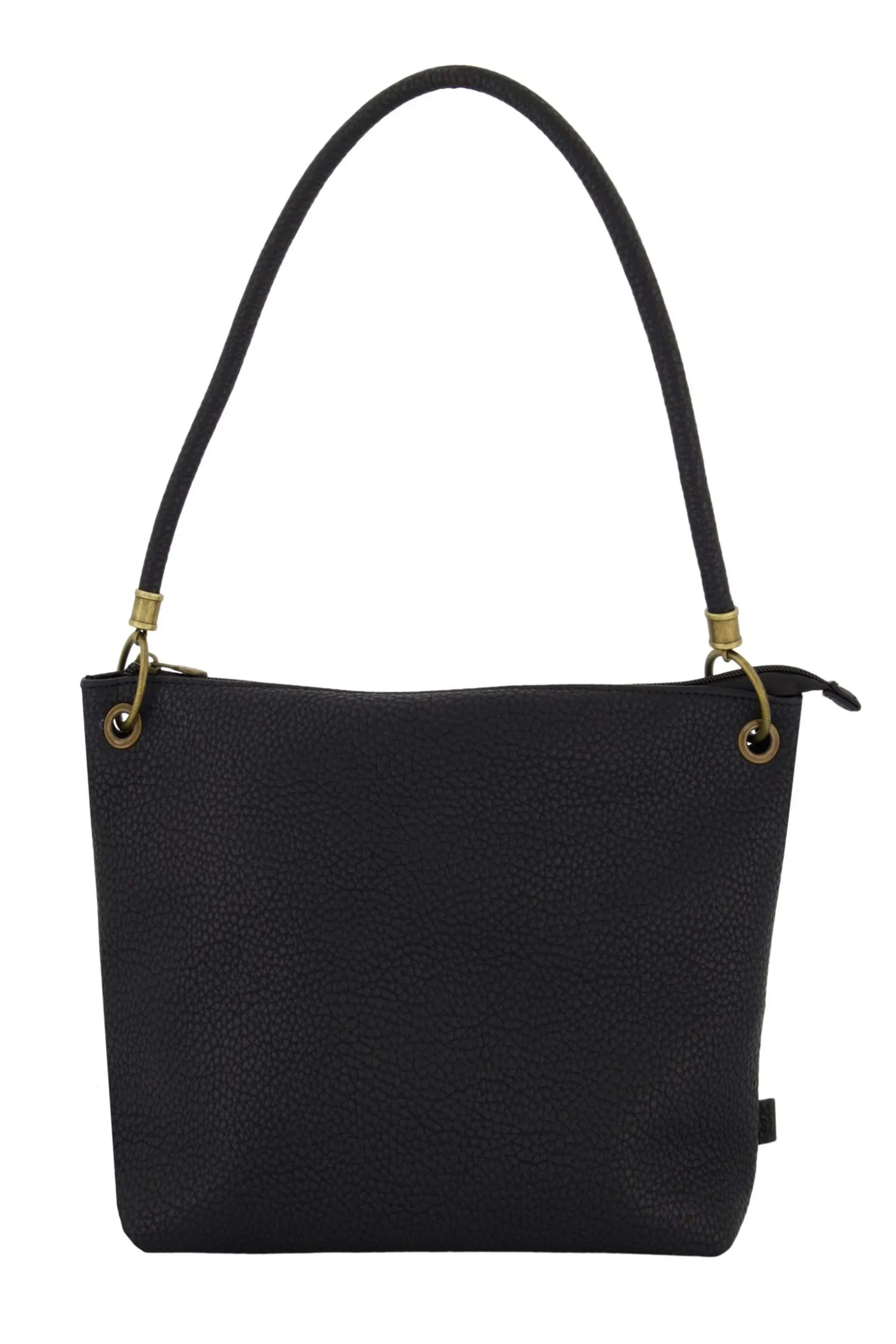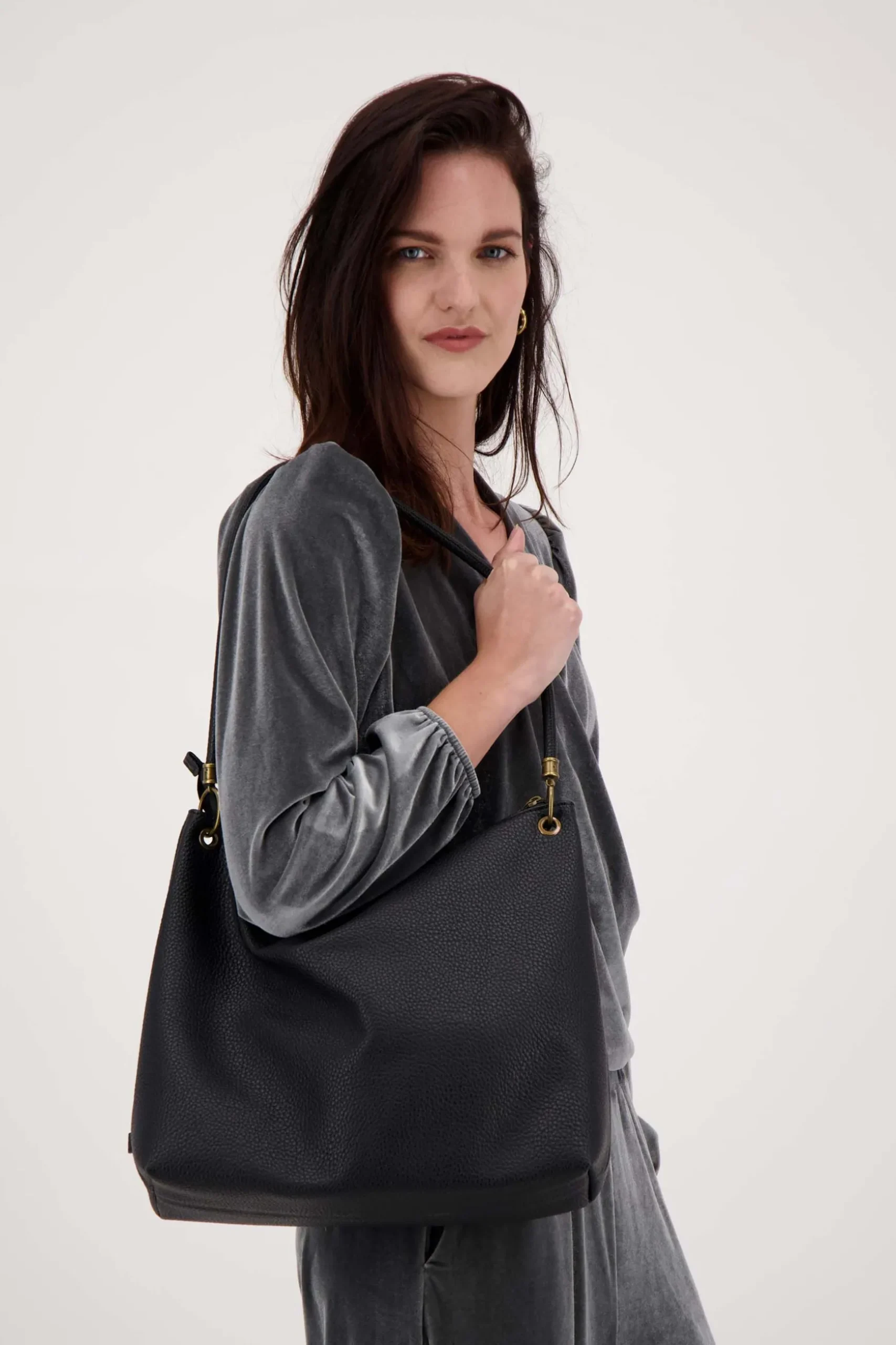Zusss basic schoudertas met hengsel L zwart|Met deze schoudertas van Zusss kom je niks tekort! De tas is zwart van kleur en gemaakt van PU leer. Met een formaat van 31x32x12cm is de tas ideaal omal je spullen in mee te nemen. De tas heeft een hengsel die met gouden ringen is bevestigd aan de tas. De tas sluit met een rits, hierdoor raak je niks kwijt. Aan de ritssluiting zit een gouden muntje met daarop het Zusss logo. Ook vind je het logo op het PU labeltje aan de zijkant van de schoudertas. In de tas zit een ritsvakje, ook wel zo handig. Neem ook eens een kijkje bij de Zusss mooimakers.Welke maakt jouw outfit af?|Zusss: basic, stoer, uniek en een tikkeltje eigenwijs.