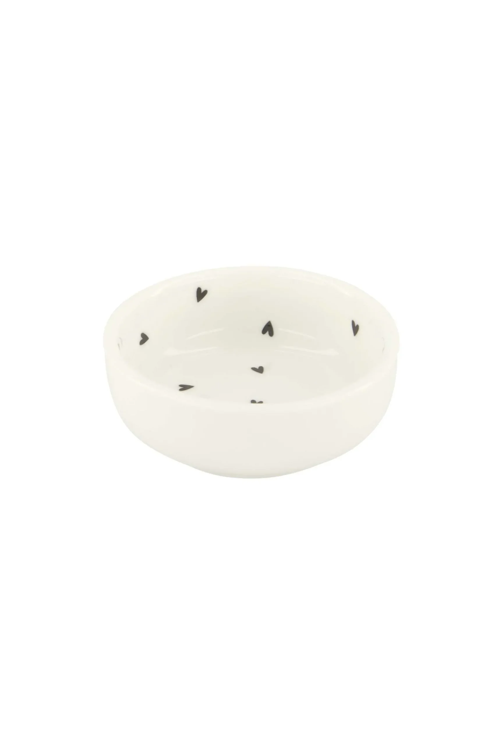Zusss dipschaaltje hartjes wit/antracietgrijs|Dit dipschaaltje van Zusss is o-zo fijn! Handig voor sausjes of om bijvoorbeeld je gebruikte theezakje in te leggen. Dit dipschaaltje is wit van kleur met daarop antracietgrijze hartjes. Dit item is gemaakt van aardewerk, heeft een doorsnede van 7,5cm en is 3cm hoog. Tip: neem eens een kijkje bij het Zusss keukentextiel. |Zusss: basic, stoer, uniek en een tikkeltje eigenwijs.