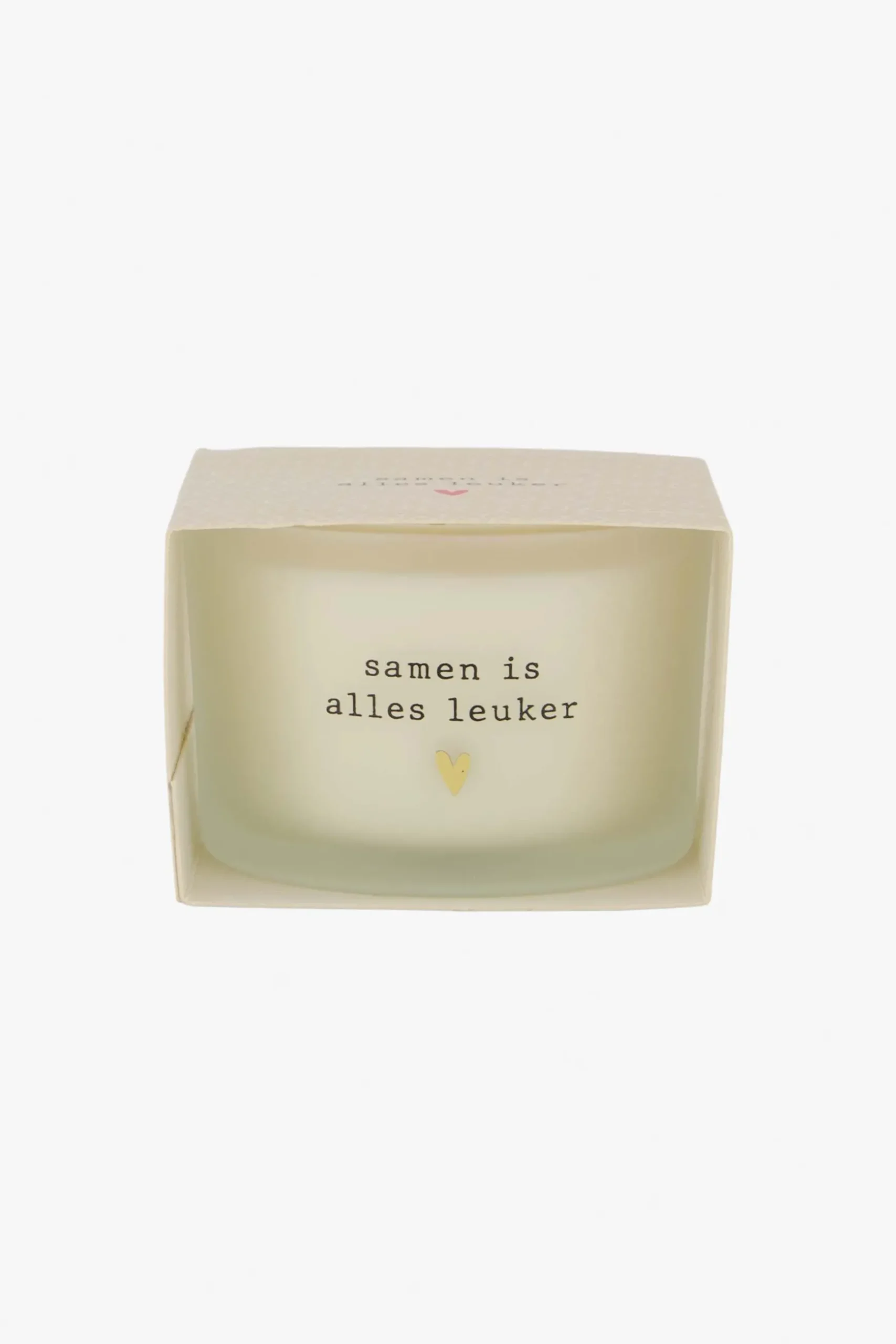 Zusss geurkaars in wikkel samen is alles leuker zand|Deze geurkaars van Zusss ziet eruit als een kadootje! Om de geurkaars zit een zandkleurige wikkel met een hartjes print. Daarop staat de tekst: samen is alles leuker. Het glaasje heeft een diameter van 7,5cm en is 7,5cm hoog. Dit item is erg leuk als kadootje!|Zusss: basic, stoer, uniek en een tikkeltje eigenwijs.