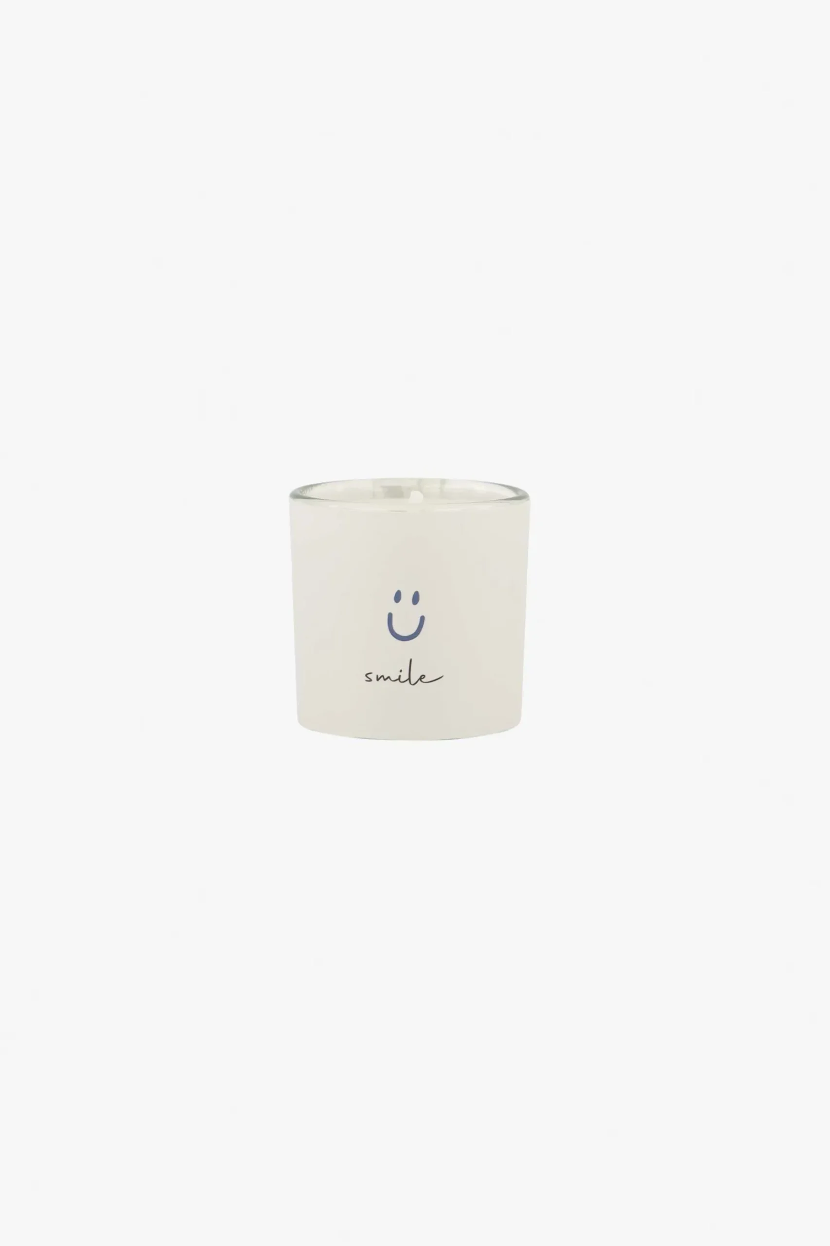 Zusss geurkaarsje in wikkel smile zand|Dit geurkaarsje van Zusss ziet er gezellig uit en ruikt ook nog eens lekker naar fresh linen! Om deze geurkaars zit een witte wikkel met daarop in blauwe letters een smile en de tekst: smile. Perfect om iemand te verrassen! Het glaasje heeft een diameter van 4,7cm, is 4,4cm hoog en heeft ca 8 branduren. Kijk ook eens bij de andere Zusss kadootjes. te geven!|Zusss: basic, stoer, uniek en een tikkeltje eigenwijs.