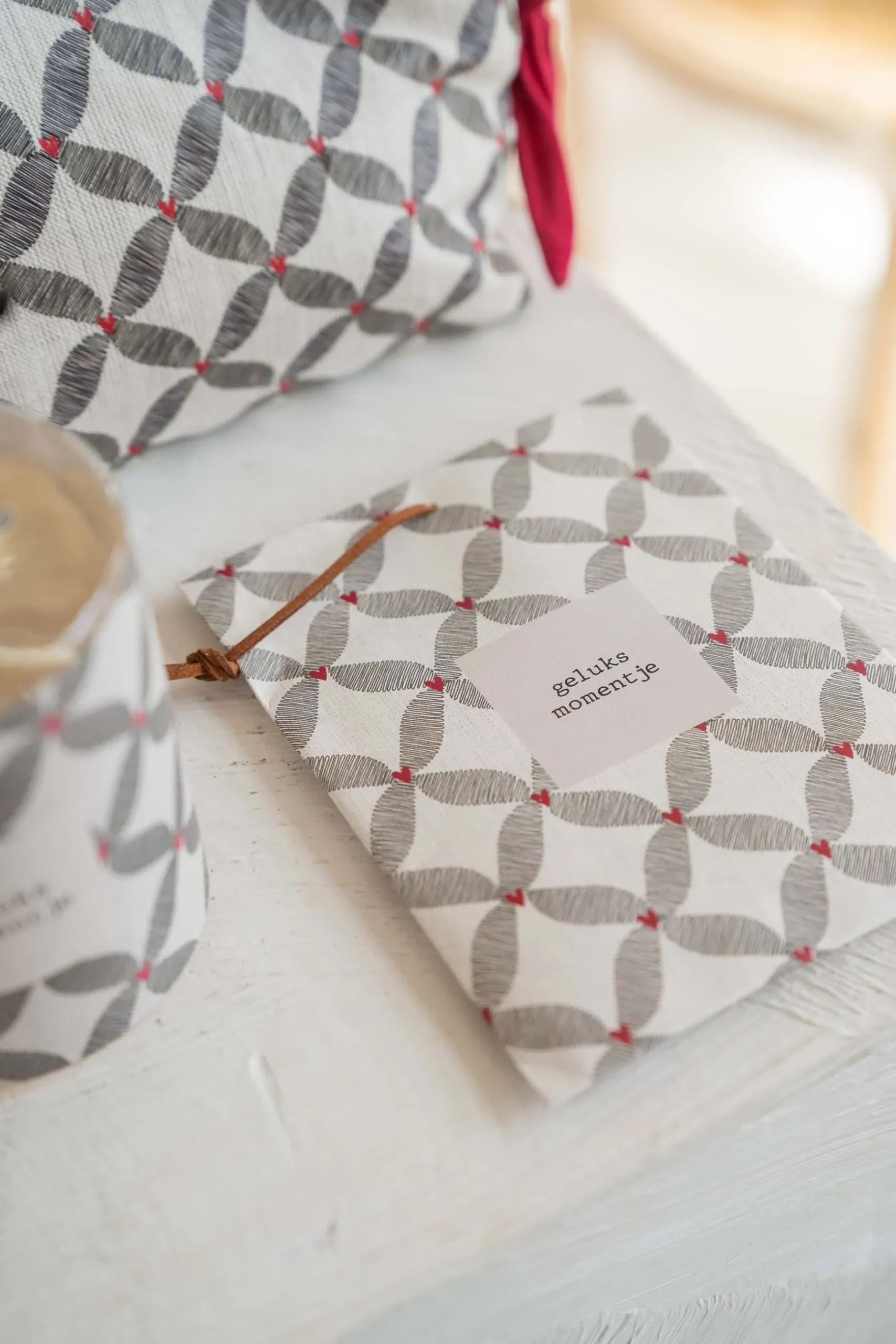 Zusss geurzakje schone was geluksmomentje antracietgrijs/roze rood|Dit geurzakje van Zusss laat jouw hele kamer lekker ruiken naar fresh cotton. Met het lintje hang je ‘m gemakkelijk aan een deurklink of in je kledingkast. Dit geurzakje heeft een leuke print met daarop de tekst: geluksmomentje. Verras jezelf of een ander met dit leuke kado! |Zusss: basic, stoer, uniek en een tikkeltje eigenwijs.