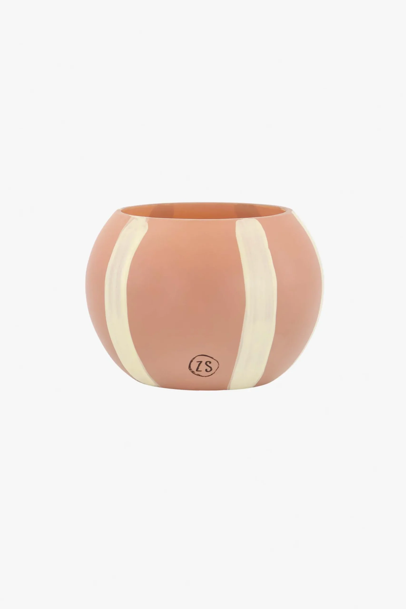 Zusss glazen geurkaars met strepen zand poederroze|Deze glazen geurkaars van Zusss is een fijne sfeermaker in huis. Door de frisse saliegroene kleur krijg je spontaan zin in het voorjaar! Erg leuk om te combineren met een hogere kaarsenhouder of kandelaar. De kaars verspreid een heerlijke geur in je kamer! De doorsnede van deze geurkaars is 9 cm en de hoogte 7 cm. Ook erg leuk als kado! |Zusss: basic, stoer, uniek en een tikkeltje eigenwijs.