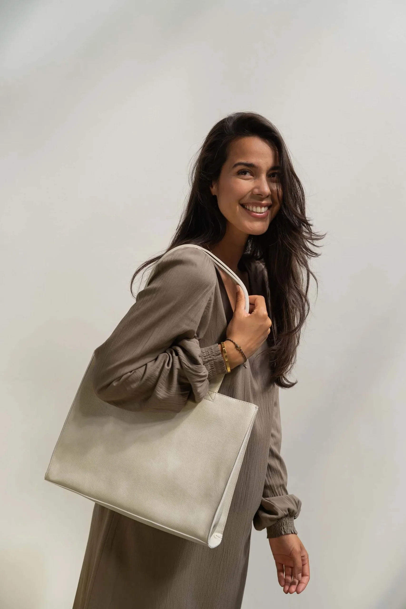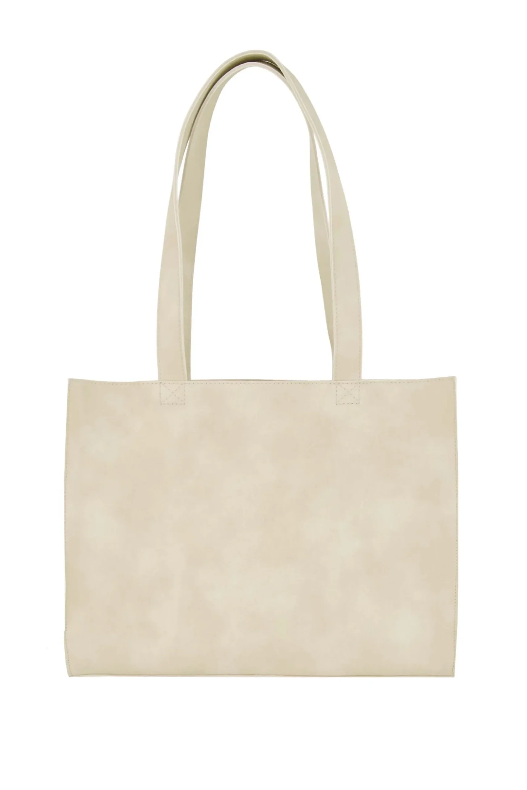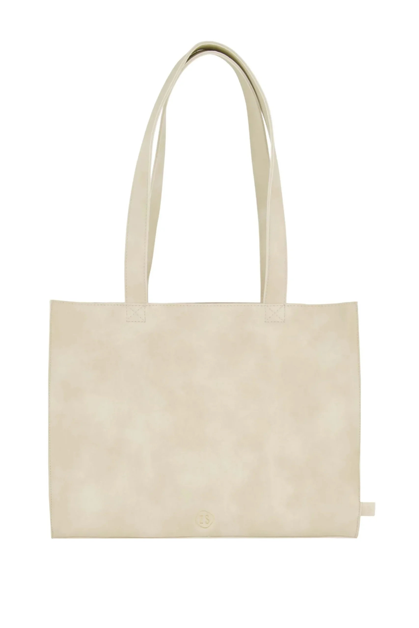 Zusss handtas ecru|Deze fijne handtas van Zusss is ideaal! Met een grootte van 27x35x10 centimeter kun je heel wat kwijt in de tas. Je telefoon, portemonnee, waterfles en noem maar op. De tas is ecru kleurig en is gemaakt van PU leer. Op de voorkant van de tas vind je subtiel het Zusss logo. Ook vind je het logo aan de zijkant van de tas op een labeltje. Bij welke Zusss outfit zou jij deze handtas dragen?|Zusss: basic, stoer, uniek en een tikkeltje eigenwijs.