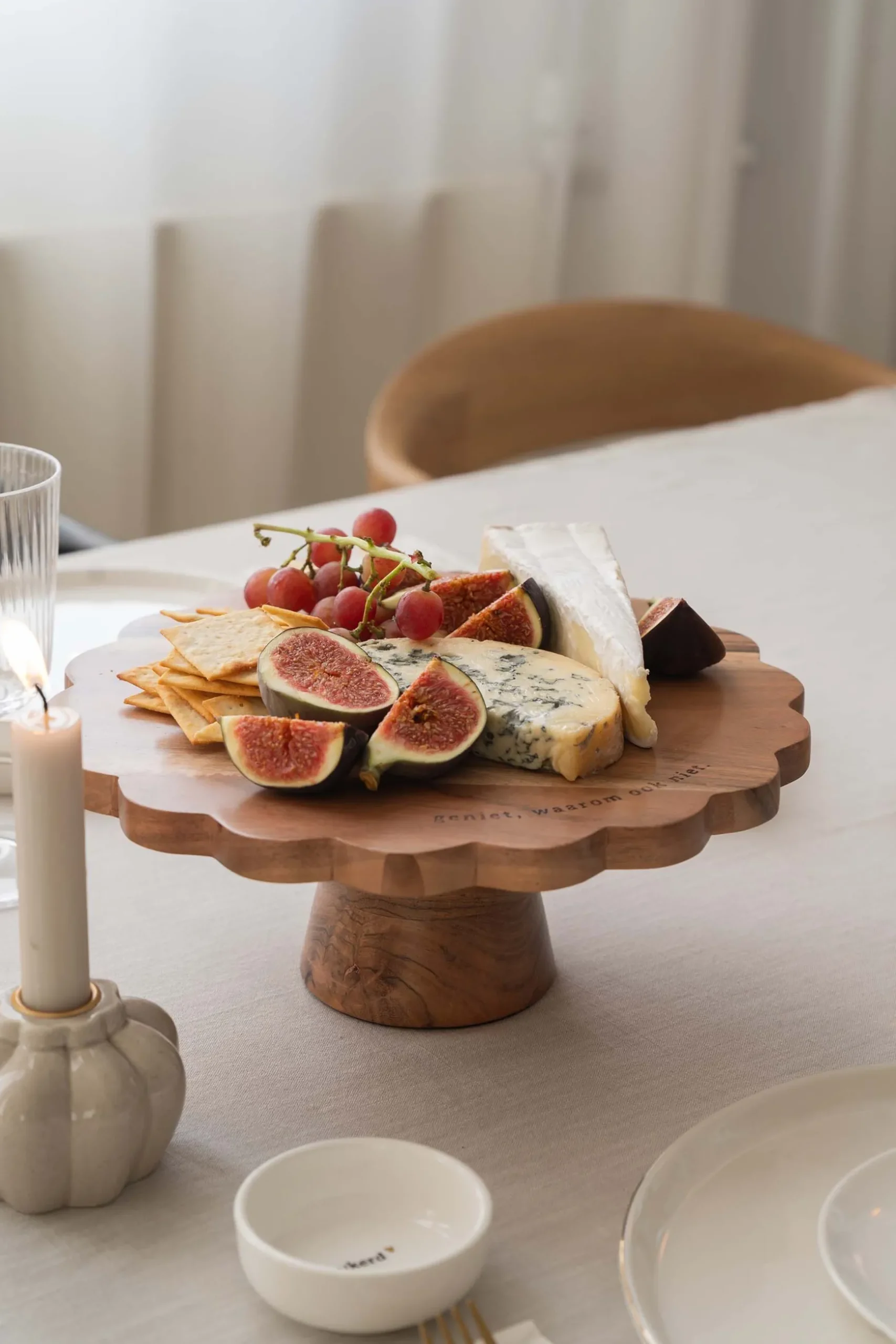 Zusss houten taartplateau donkerbruin|De lekkerste taart verdiend het mooiste plaatsje. Op deze houten taartplateau van Zusss komt ‘ie zeker tot zijn recht! Deze taartplateau is donkerbruin van kleur en heeft een ribbelrand. Langs de rand staat de tekst: geniet, waarom ook niet. Dit item heeft een doorsnede van 28cm en is 11,5cm hoog. Tip: neem eens een kijkje bij het Zusss servies! |Zusss: basic, stoer, uniek en een tikkeltje eigenwijs.