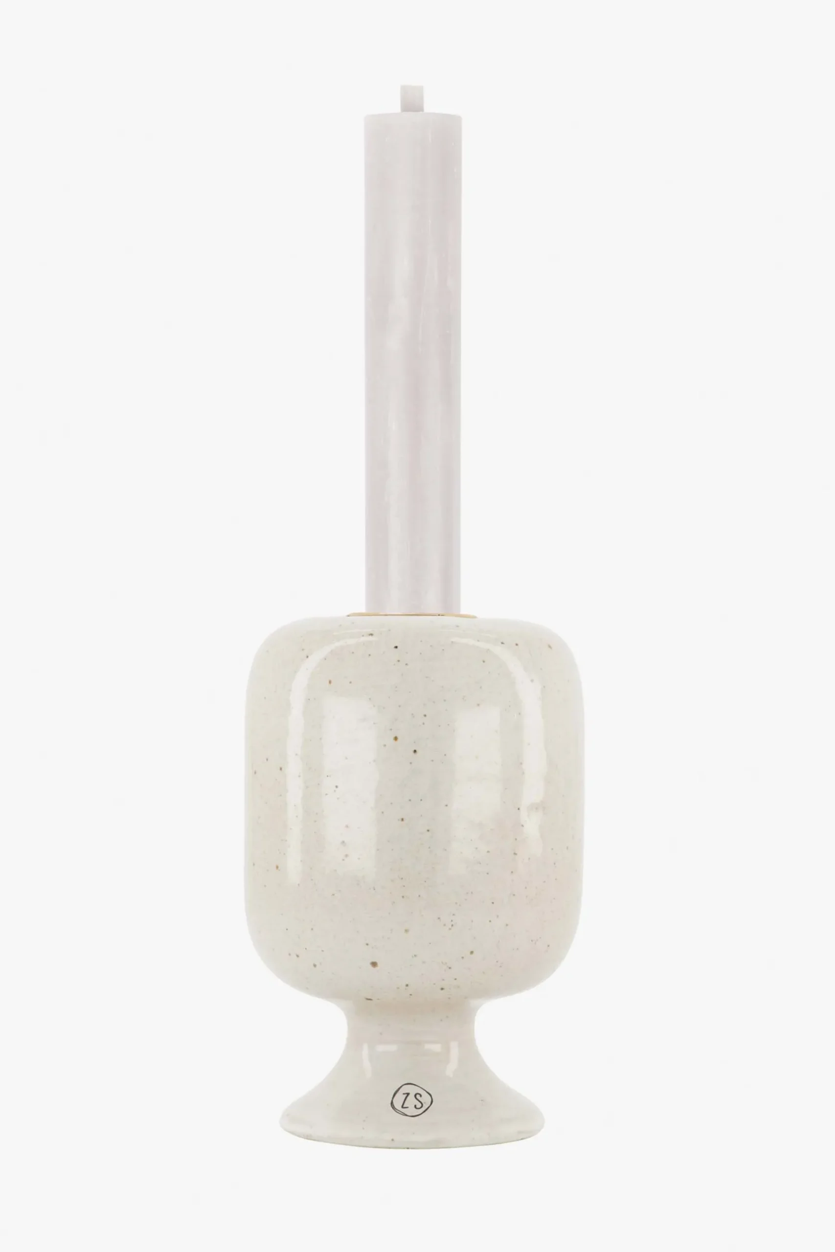 Zusss keramieken kandelaar L glazuur zand spikkels|Een unieke Zusss kandelaar om de rustieke Zusss kaarsen in te branden. De kandelaar is gemaakt van keramiek en heeft een zandkleur met spikkels. Erg leuk om te combineren met gekleurde kaarsen! In deze kandelaar passen de rustieke Zusss kaarsen van 12cm en 20cm, en de geribbelde Zusss kaarsen van 20cm. De doorsnede van de kandelaar is 8 cm en de hoogte is 18 cm. Ook erg leuk te combineren met andere Zusss kaarsenhouders! |Zusss: basic, stoer, uniek en een tikkeltje eigenwijs.