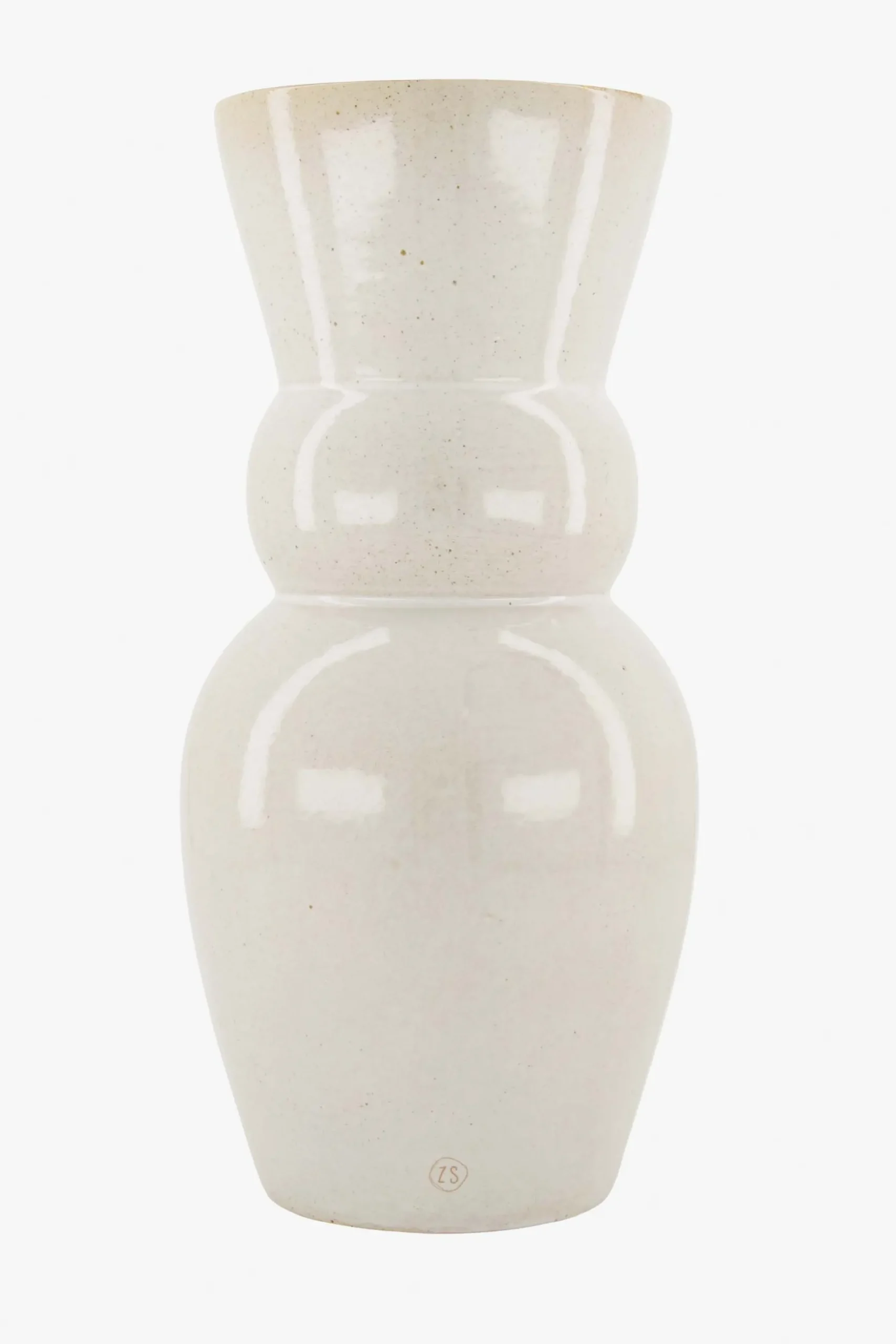 Zusss keramieken vaas glazuur zand spikkels|Deze leuke Zusss vaas maakt jouw woonkamer helemaal af! Dit vaasje heeft een unieke vorm met bollingen. De keramieken vaas is geglazuurd en heeft een zandkleur met spikkels. Op de voorkant staat subtiel het Zusss logo. Zet dit leuke ding op je salontafel en laat’m stralen! Dit exemplaar heeft een diameter van 12 cm en is 28 cm hoog. Kijk ook eens bij de andere woonaccessoires uit deze collectie!|Zusss: basic, stoer, uniek en een tikkeltje eigenwijs.