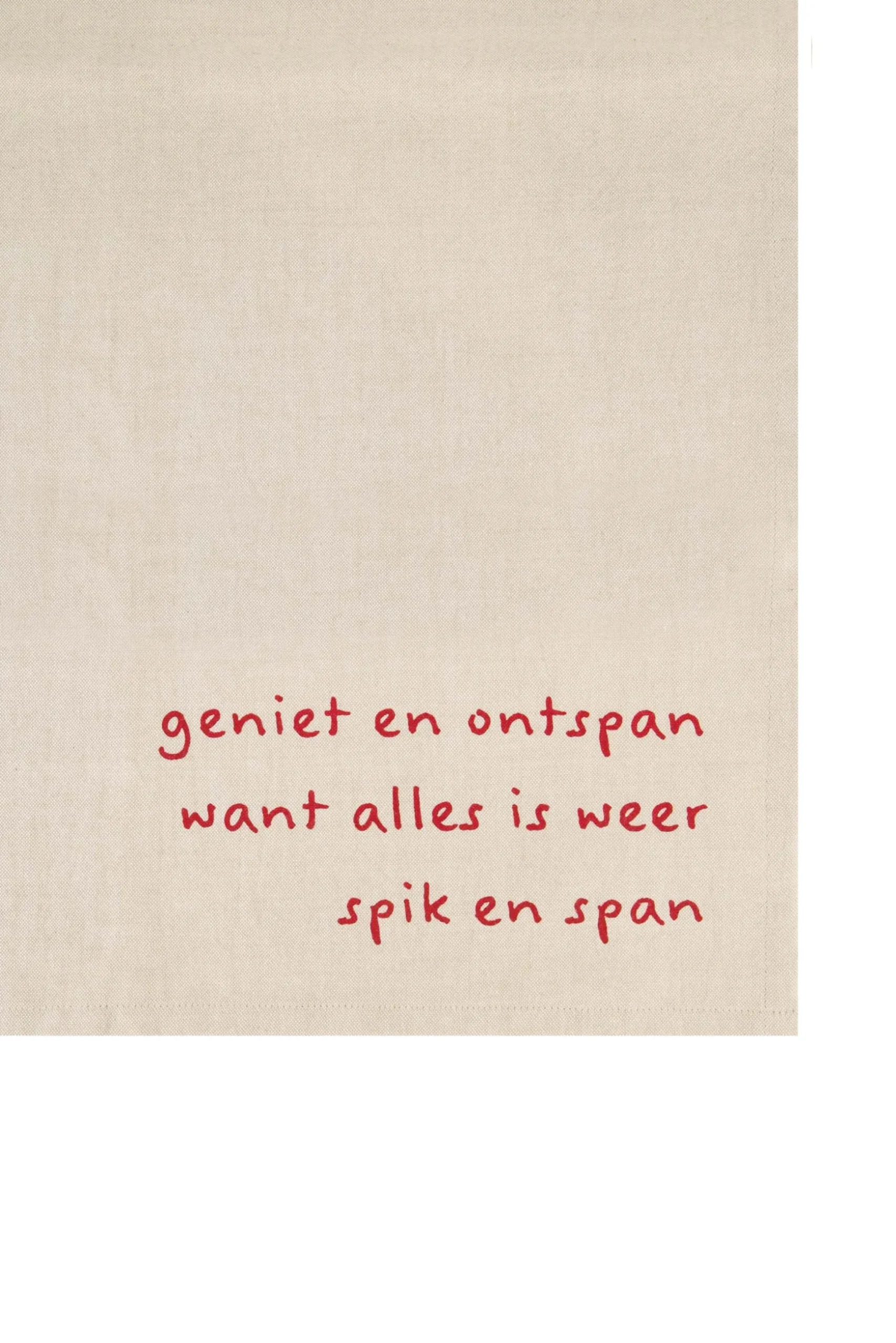 Zusss keukenset hartjes geniet en ontspan beige|Deze Zusss set kan niet ontbreken in jouw keuken. De handdoek is heeft een beige hartjespatroon. De theedoek is effen beige van kleur met daarop de tekst: geniet en ontspan, want alles is weer spik en span. Daar word je vrolijk van! Deze keukenset is gemaakt van 100% katoen. Deze items hebben een formaat van 70x50cm. Tip: neem eens een kijkje bij het Zusss servies! |Zusss: basic, stoer, uniek en een tikkeltje eigenwijs.