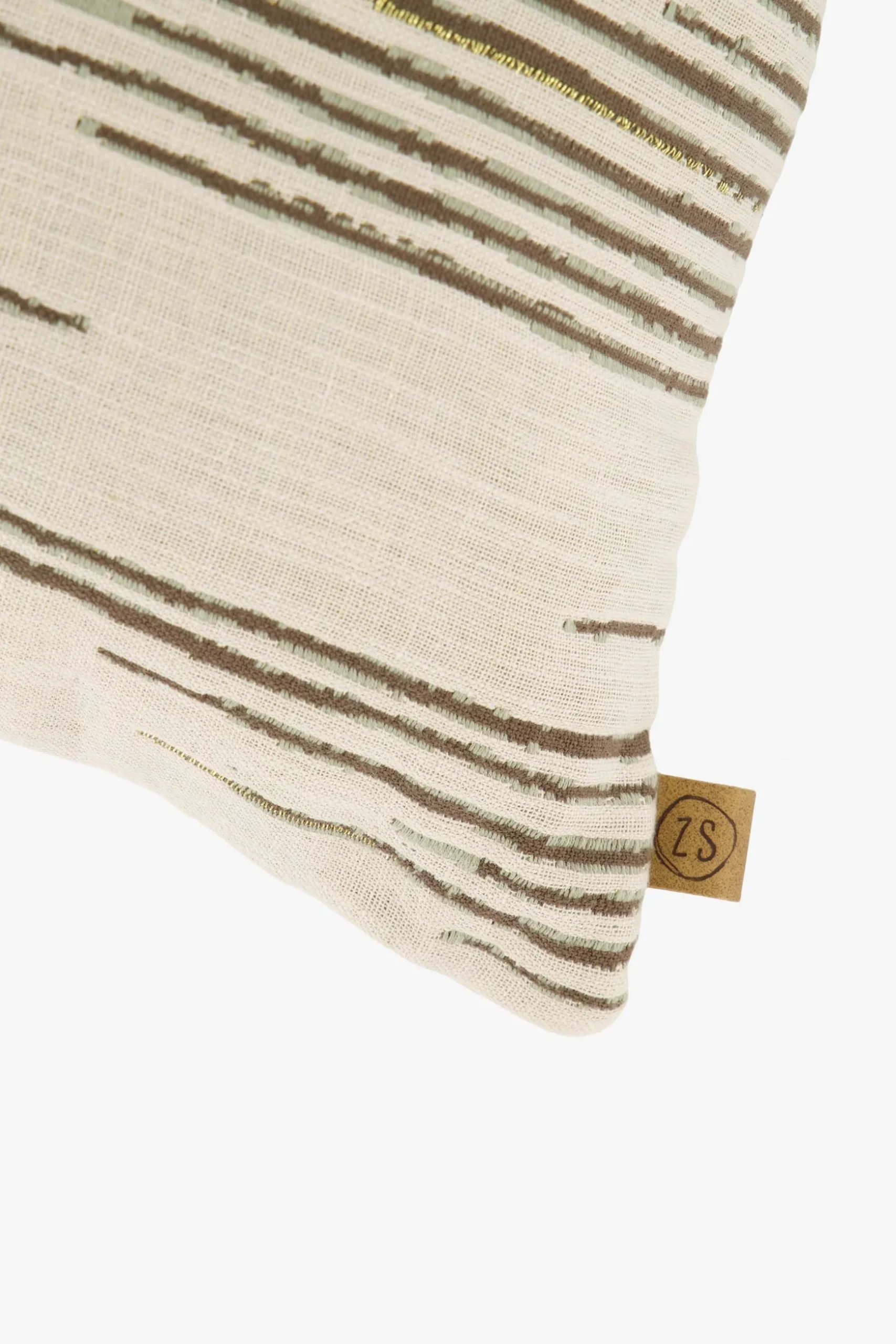 Zusss kussen lijnenpatroon 60x40cm zand/leem/saliegroen|Met dit stijlvolle kussen van Zusss haal je het voorjaar in huis. De voorkant van dit mooie kussen heeft een lijnenpatroon met de kleuren zand, leem en saliegroen. De achterkant is zandkleurig. Het kussen is gemaakt van 75% katoen, 23% linnen en 2% lurex. Het Zusss logo vind je terug op het PU labeltje aan de zijkant. Het formaat van het kussen is 60×40 centimeter. Neem ook een kijkje bij de andereZusss kussens !|Zusss: basic, stoer, uniek en een tikkeltje eigenwijs.