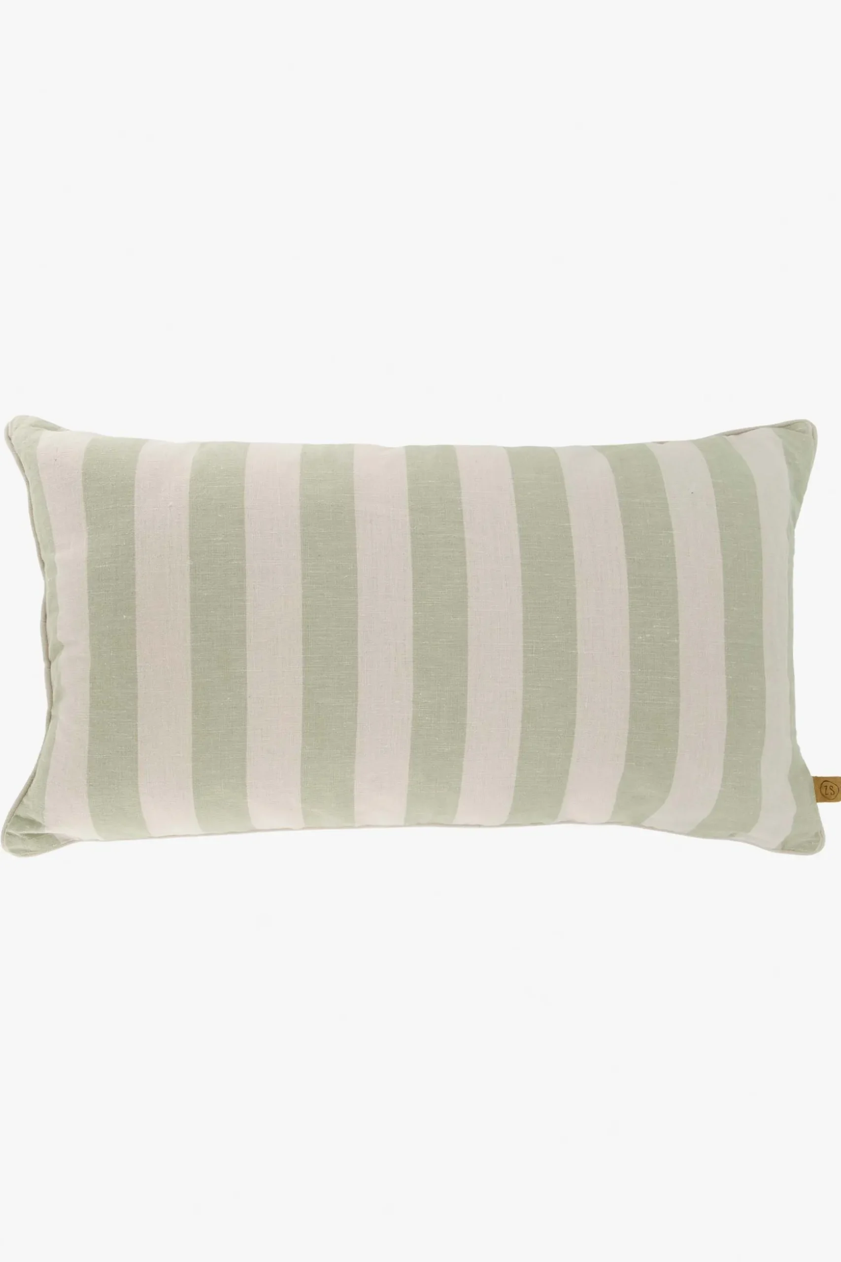 Zusss kussen strepen 60x40cm zand/saliegroen|Met dit gestreepte kussen van Zusss haal je het voorjaar in huis. De voorkant van dit vrolijke kussen is saliegroen en zand gestreept. De achterkant is zandkleurig. Het kussen is gemaakt van 75% katoen, 23% linnen en 2% lurex. Het Zusss logo vind je terug op het PU labeltje aan de zijkant. Met welke Zusss kussens match jij dit kussen?|Zusss: basic, stoer, uniek en een tikkeltje eigenwijs.