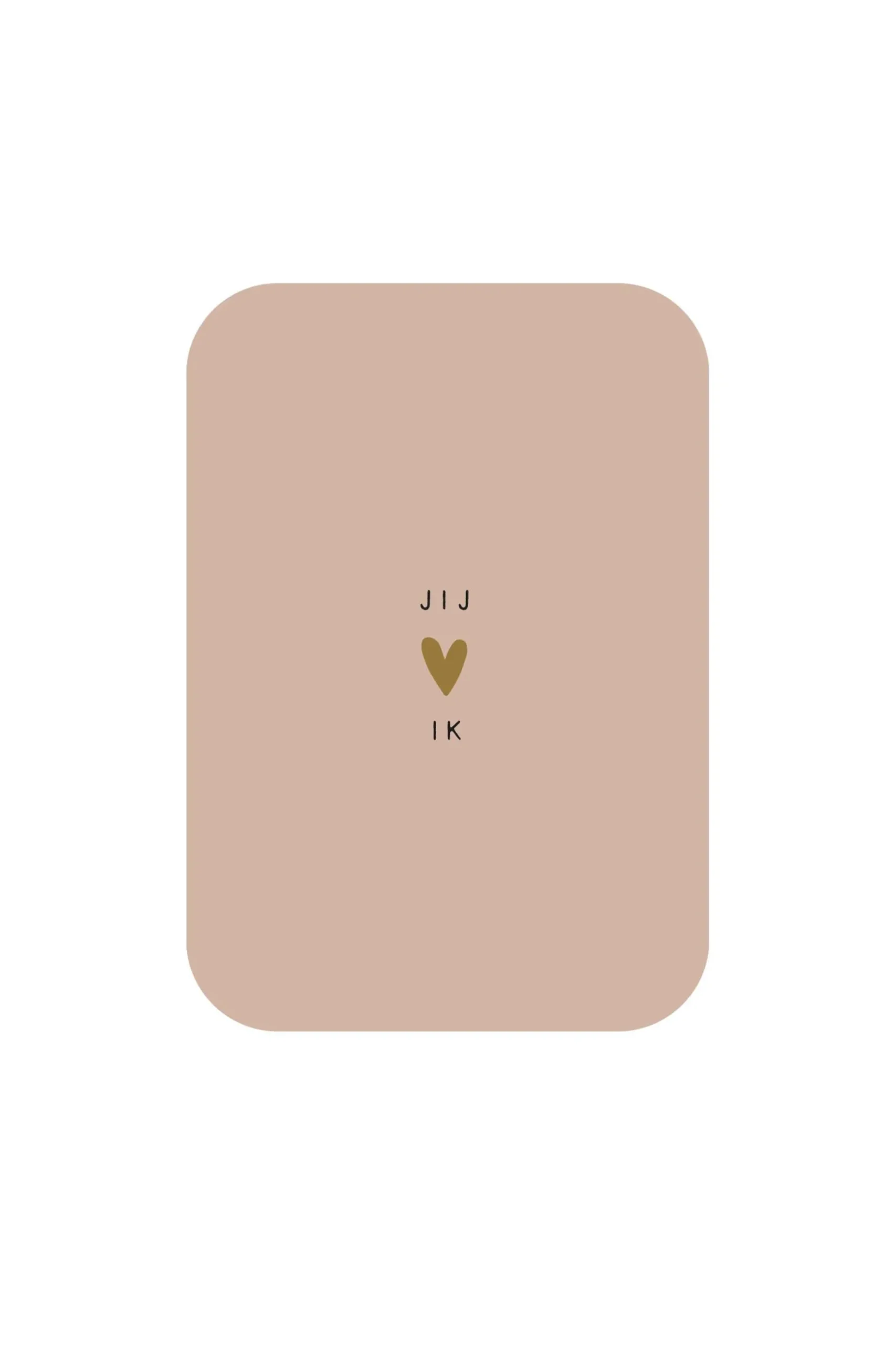 Zusss linnen kaart jij & ik|Dit Zusss kaartje valt zeker op tussen de andere kaarten! Wie maak jij blij met deze poederroze kaart? Op deze linnen kaart staat jij <3 ik. Wil je het plaatje helemaal compleet maken? Combineer deze kaart dan met een leuk Zusss kadootje.|Zusss: basic, stoer, uniek en een tikkeltje eigenwijs.