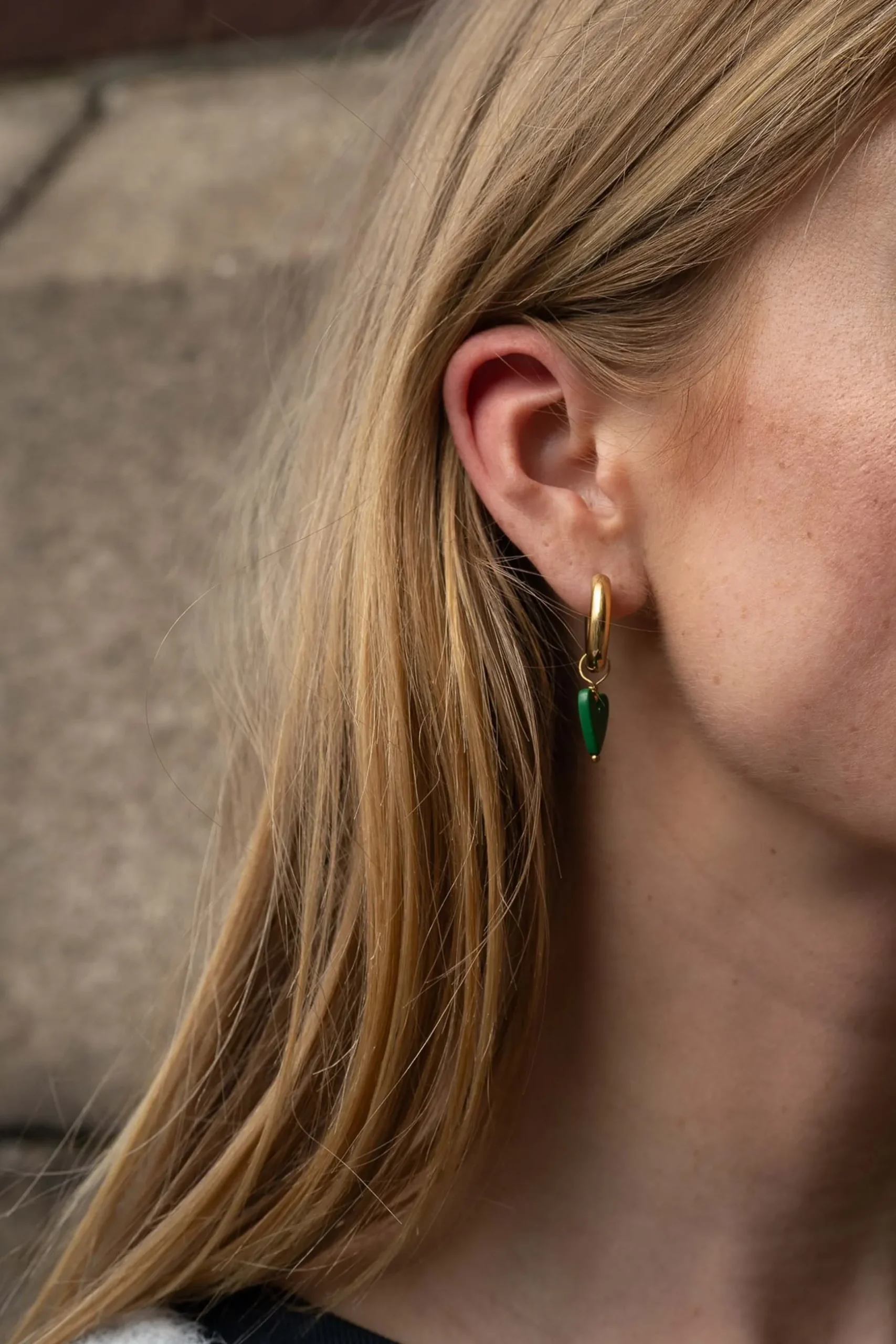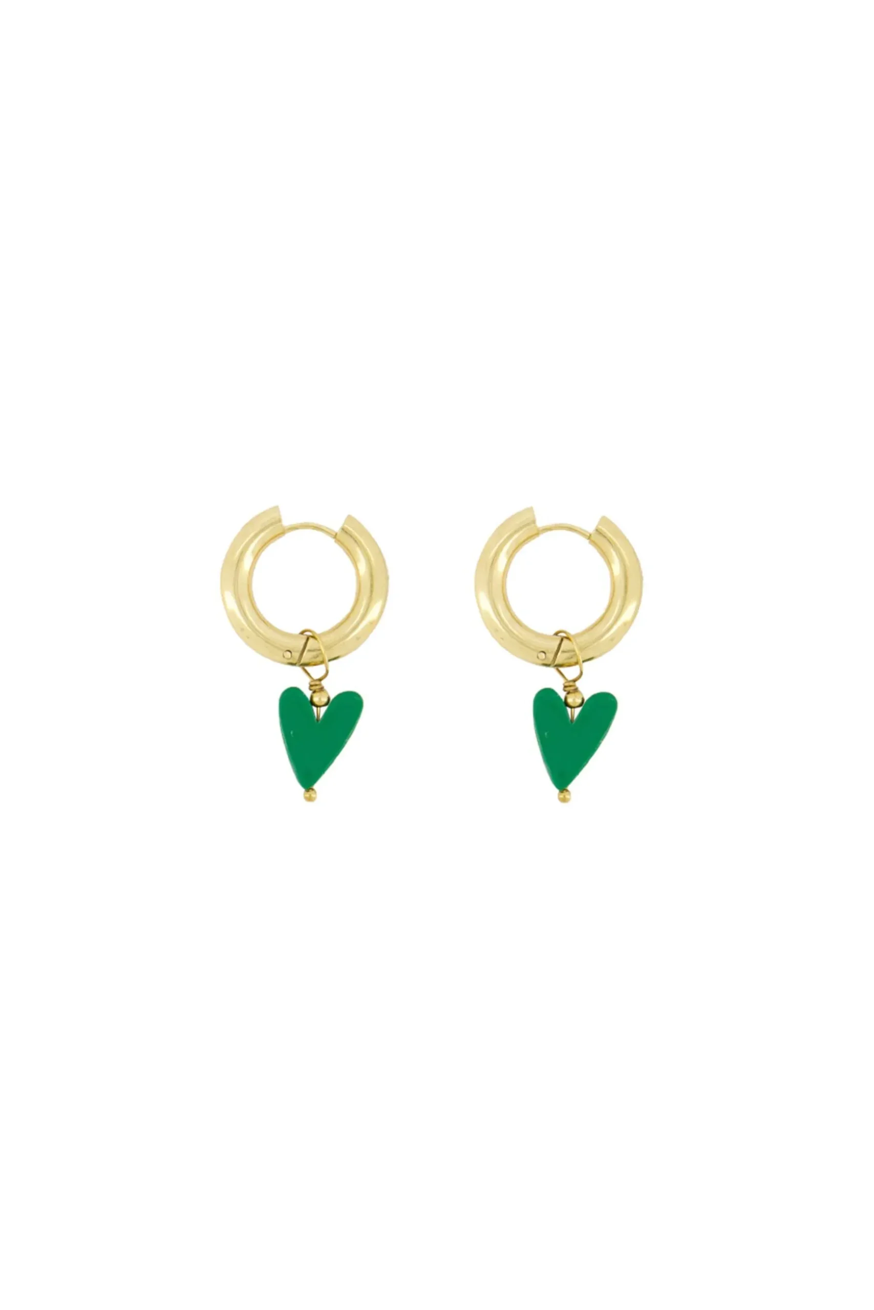 Zusss oorbel met hartje donkergroen|Deze oorbellen van Zusss zijn zo gaaf! De oorringen hebben subtiele structuur waardoor ze nét even wat anders zijn. Wat een leukerds! Aan de gouden oorbel hangt een groen Zusss hartje. Je combineert ze met andere mooimakers van Zusss! De oorbellen zijn gemaakt van stainless steel en verkleurden hierdoor niet. De oorringen zijn 2 centimeter lang en 1,3 centimeter breed. Met welke sieraden match jij ze? Ze zijn ook erg leuk om kado te geven!|Zusss: basic, stoer, uniek en een tikkeltje eigenwijs.