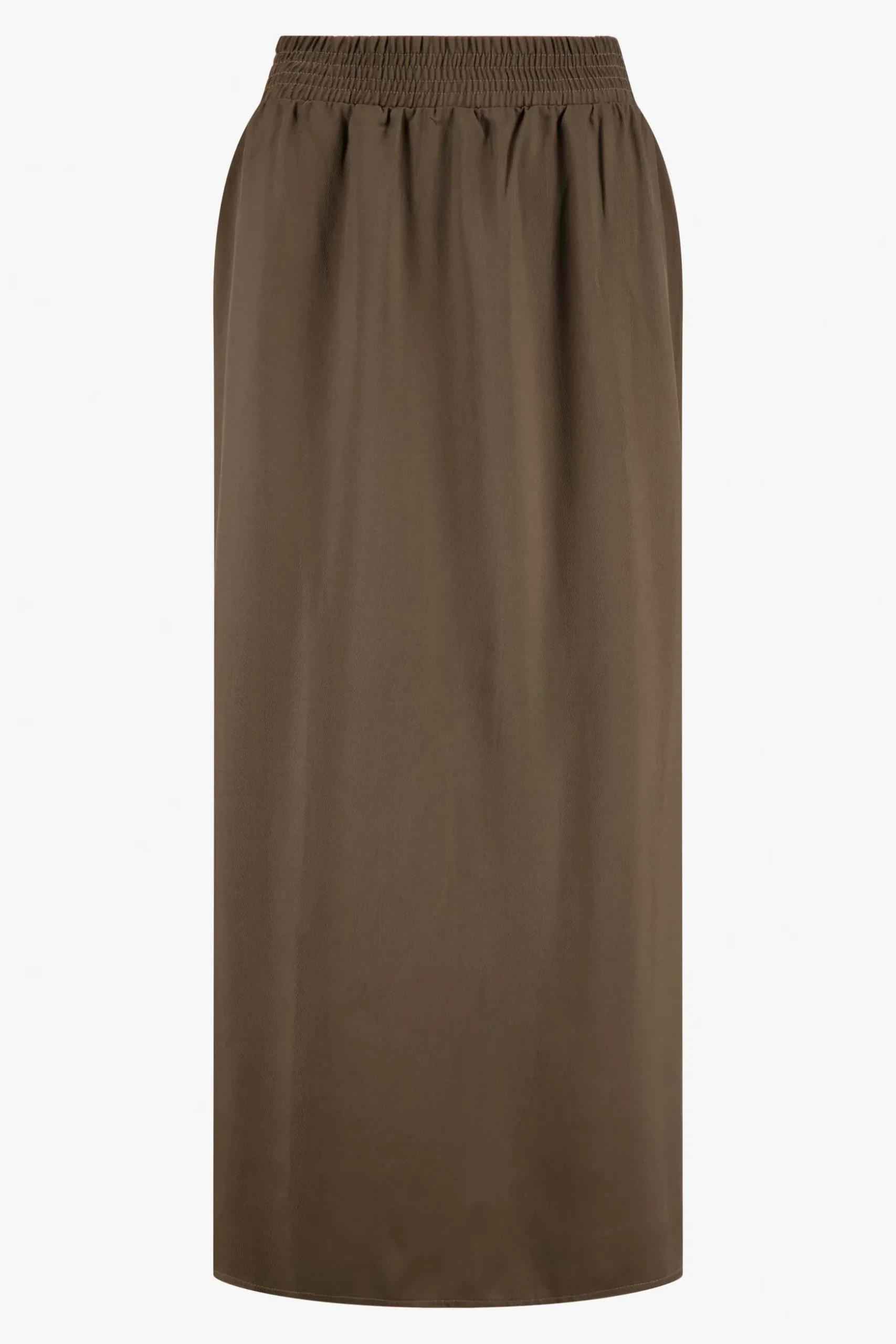 Zusss satijnen twill rok donkergroen|Een fijne rok van Zusss! Deze satijnen twill rok is donkergroen van kleur. De rok heeft een elastieken band aan de bovenkant. Met deze rok kun je alle kanten op. Combineer ‘m met een sjieke Zusss blouse of comfortabele trui! De rok is gemaakt van 64% polyester, 34% viscose en 2% elastaan. Neem ook eens een kijkje bij de Zusss tassen. Welke bezorgt jou een glimlach op je gezicht?|Zusss: basic, stoer, uniek en een tikkeltje eigenwijs.
