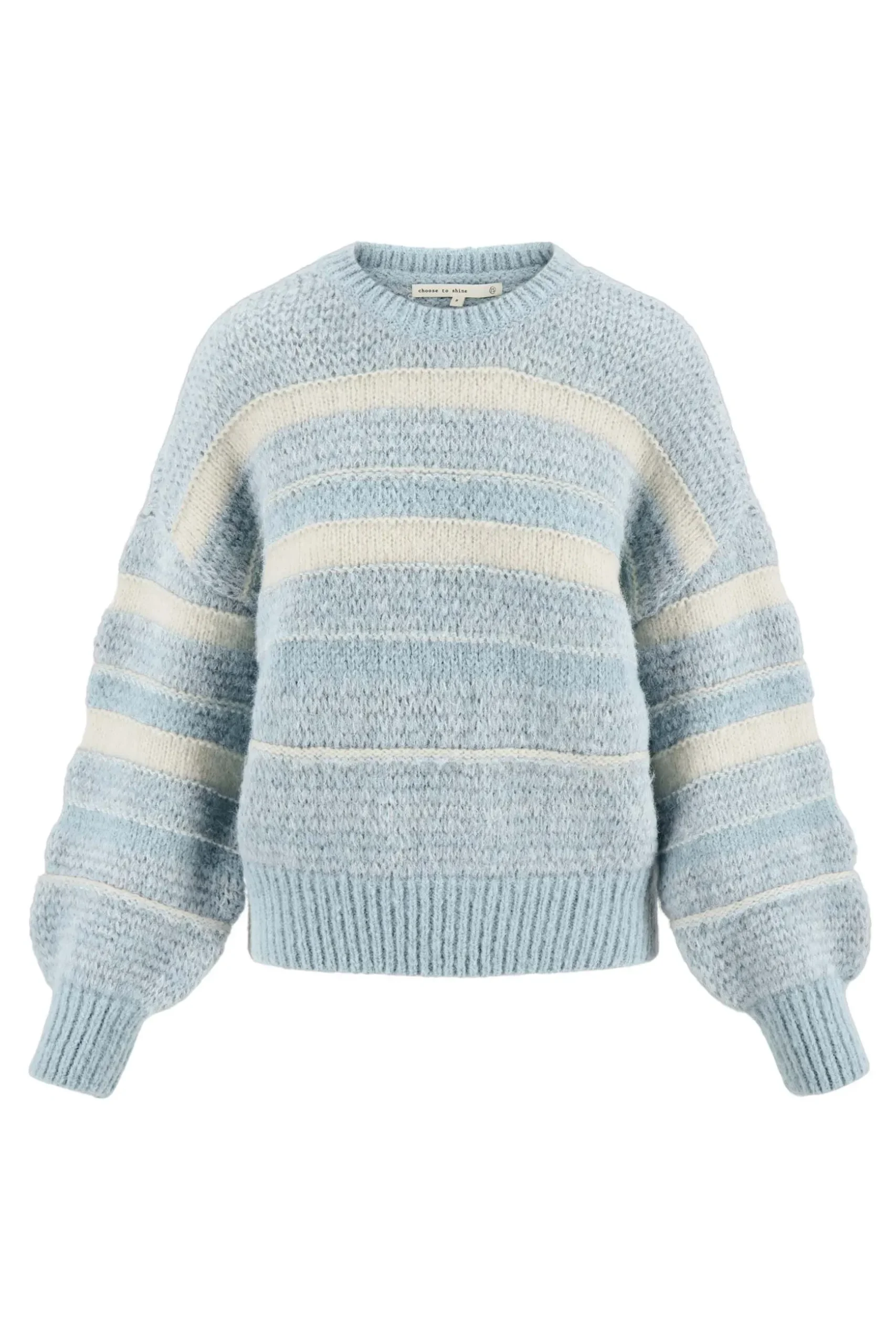 Zusss trui met streep blauwgrijs|Deze trui van Zusss zit zoo comfortabel! Deze zachte trui is blauw van kleur en met daarin lichtere strepen. De ballonmouwen van deze trui zorgen voor een stijlvolle uitstraling. Deze trui houdt jou heerlijk warm als het buiten wat kouder wordt. Je draagt ‘m bijvoorbeeld op een mooie Zusss jeans. Dit item is gemaakt van 100% polyester waarvan 57% gerecycled is. Neem ook eens een kijkje bij de Zusss tassen. Welke matcht bij jouw nieuwe outfit?|Zusss: basic, stoer, uniek en een tikkeltje eigenwijs.