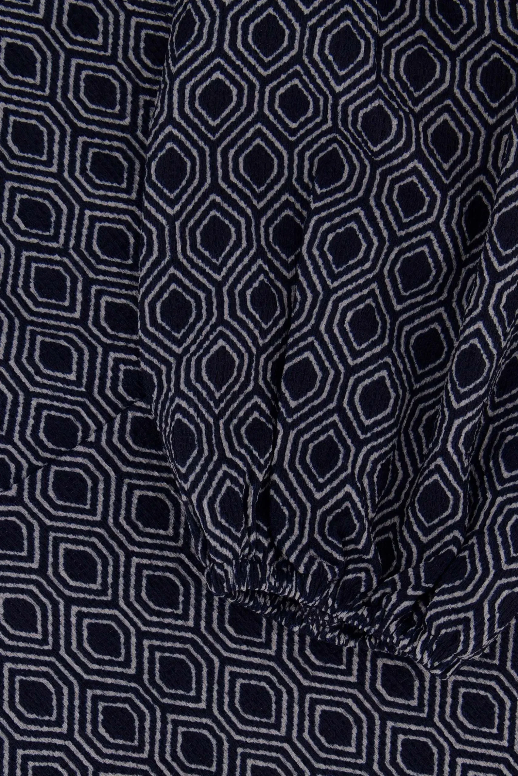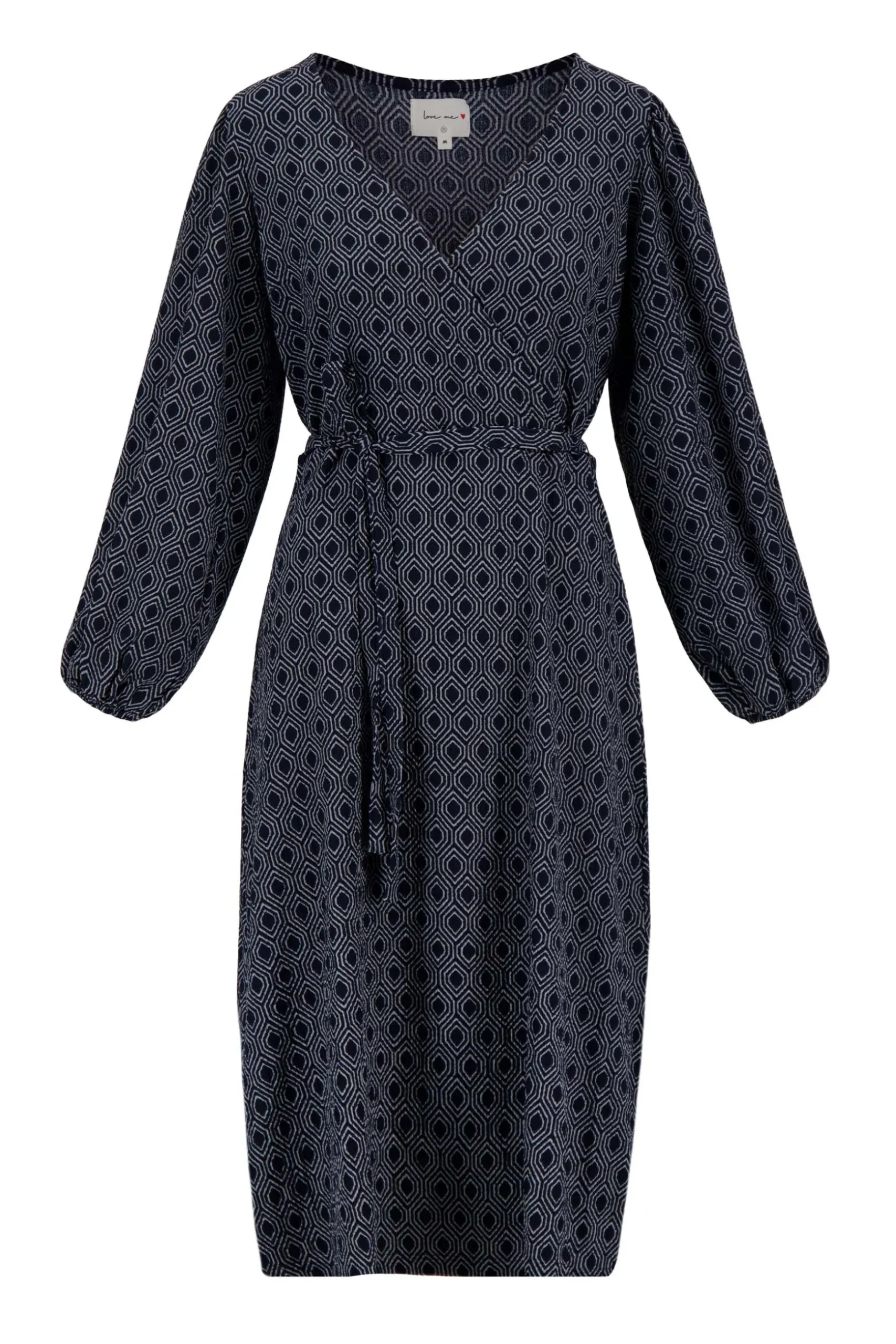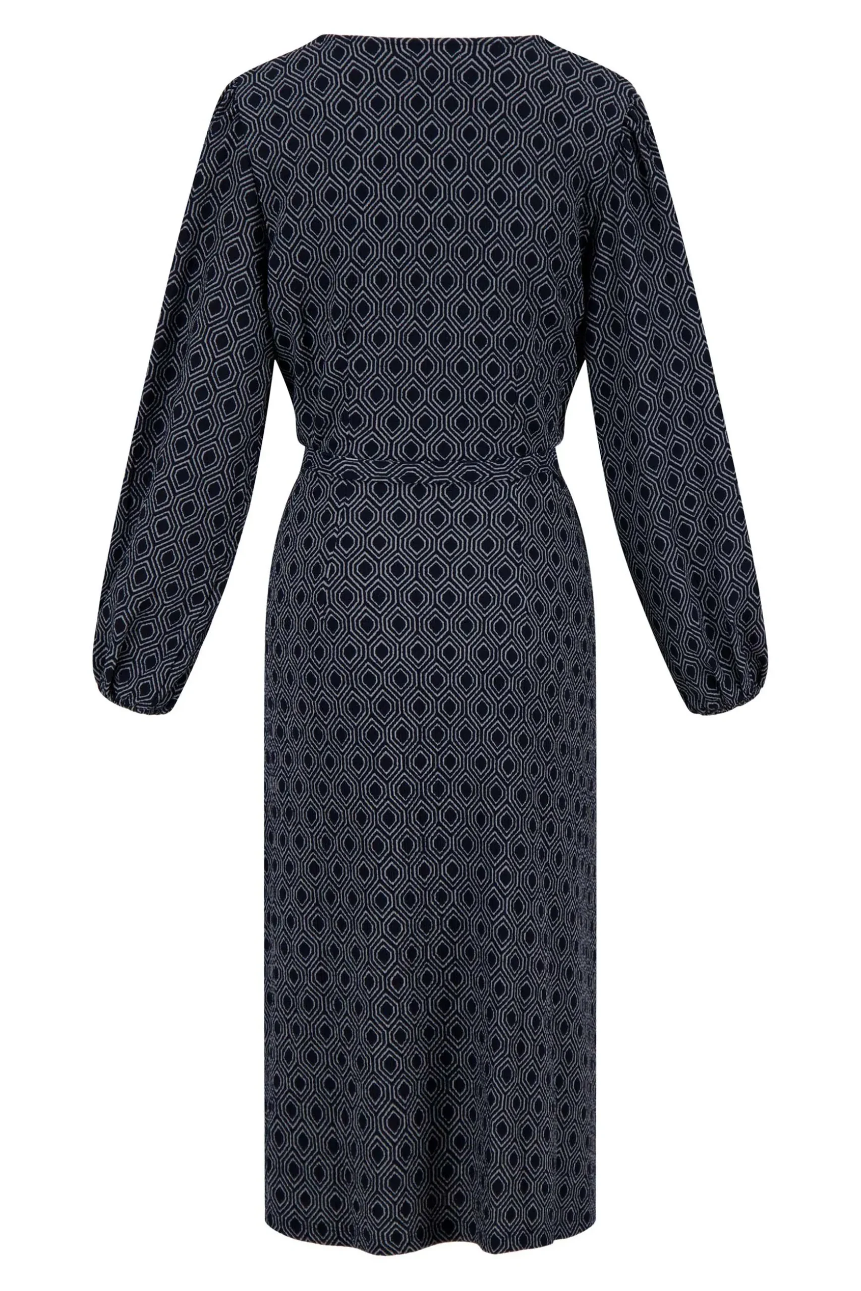 zusss wikkeljurk met blockprint donkerblauw/grijs