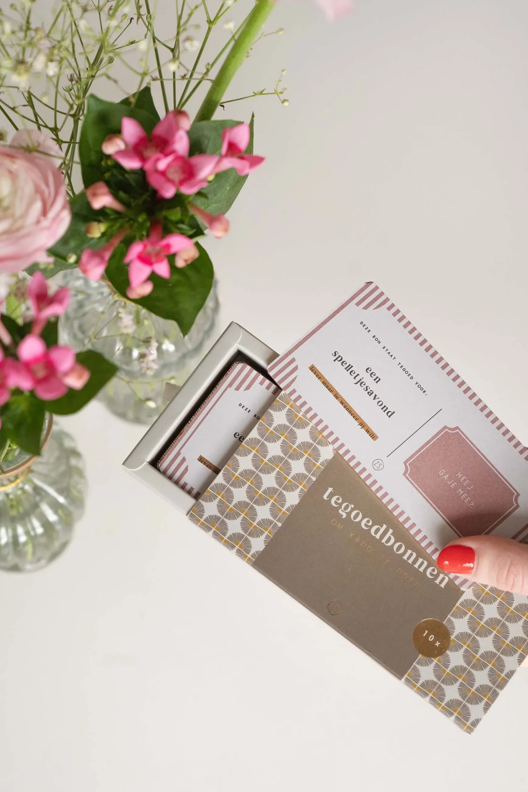 Zusss 10 tegoedbonnen in doosje multicolor|Kadootjes krijgen en uitdelen is altijd leuk! Deze tegoedbonnen van Zusss zijn mooie kadootjes om weg te geven! In dit saligroene doosje zitten 10 verschillende tegoedbonnen om uit te delen. De kaartjes hebben verschillende kleuren en vrolijke prints. Dit item heeft een afmeting van 14×7,7×2 centimeter. Tip: neem ook een kijkje bij de Zusss schrijfwaren!|Zusss: basic, stoer, uniek en een tikkeltje eigenwijs.