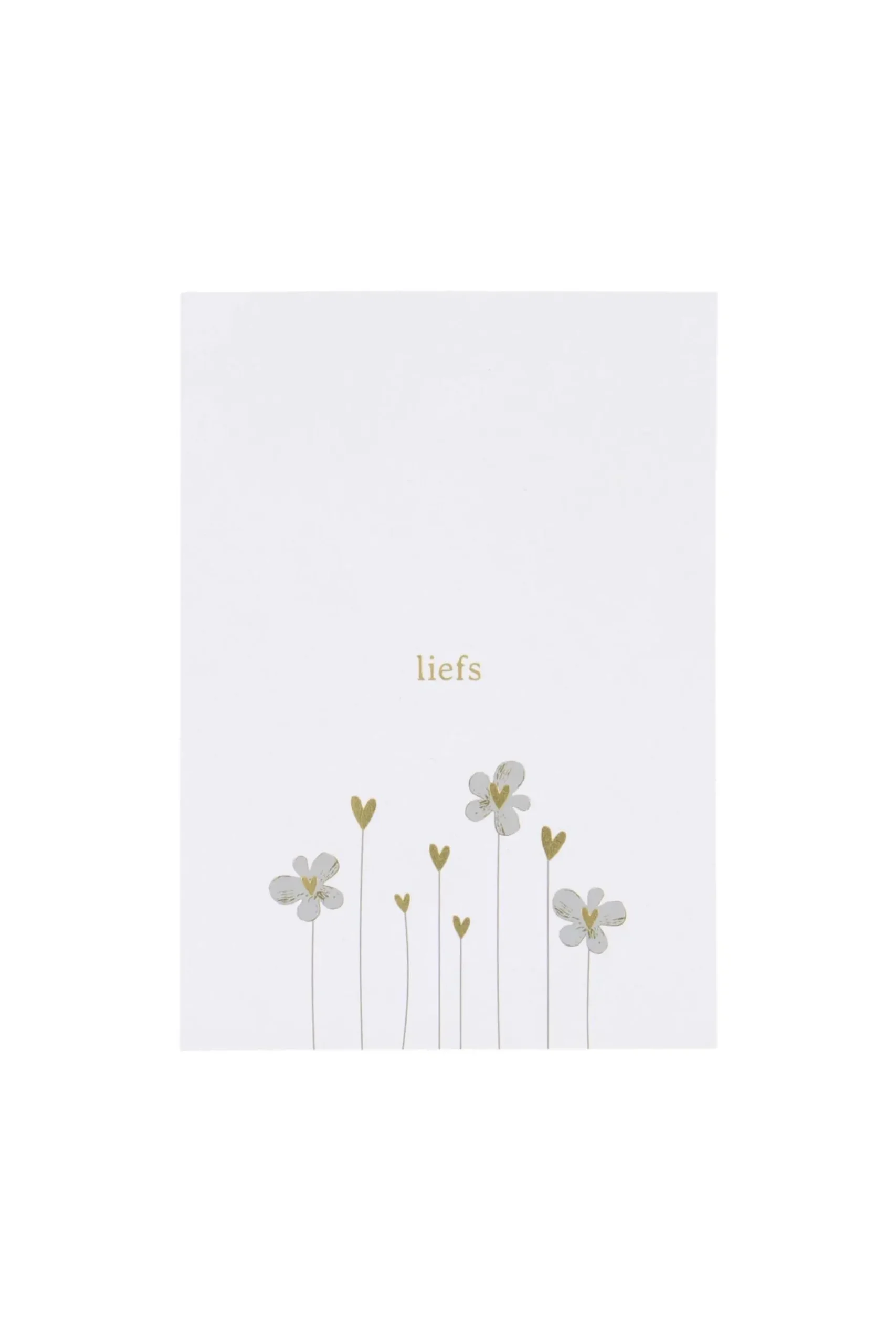 Zusss ansichtkaart liefs wit/goud|Kaartjes blijven altijd leuk, ook deze van Zusss! Op deze witte ansichtkaart staan subtiele bloemetjes met hartjes. Daarboven staat in gouden letters ‘liefs’. Het plaatje helemaal compleet maken? Kijk ook eens bij de Zusss kadootjes! |Zusss: basic, stoer, uniek en een tikkeltje eigenwijs.