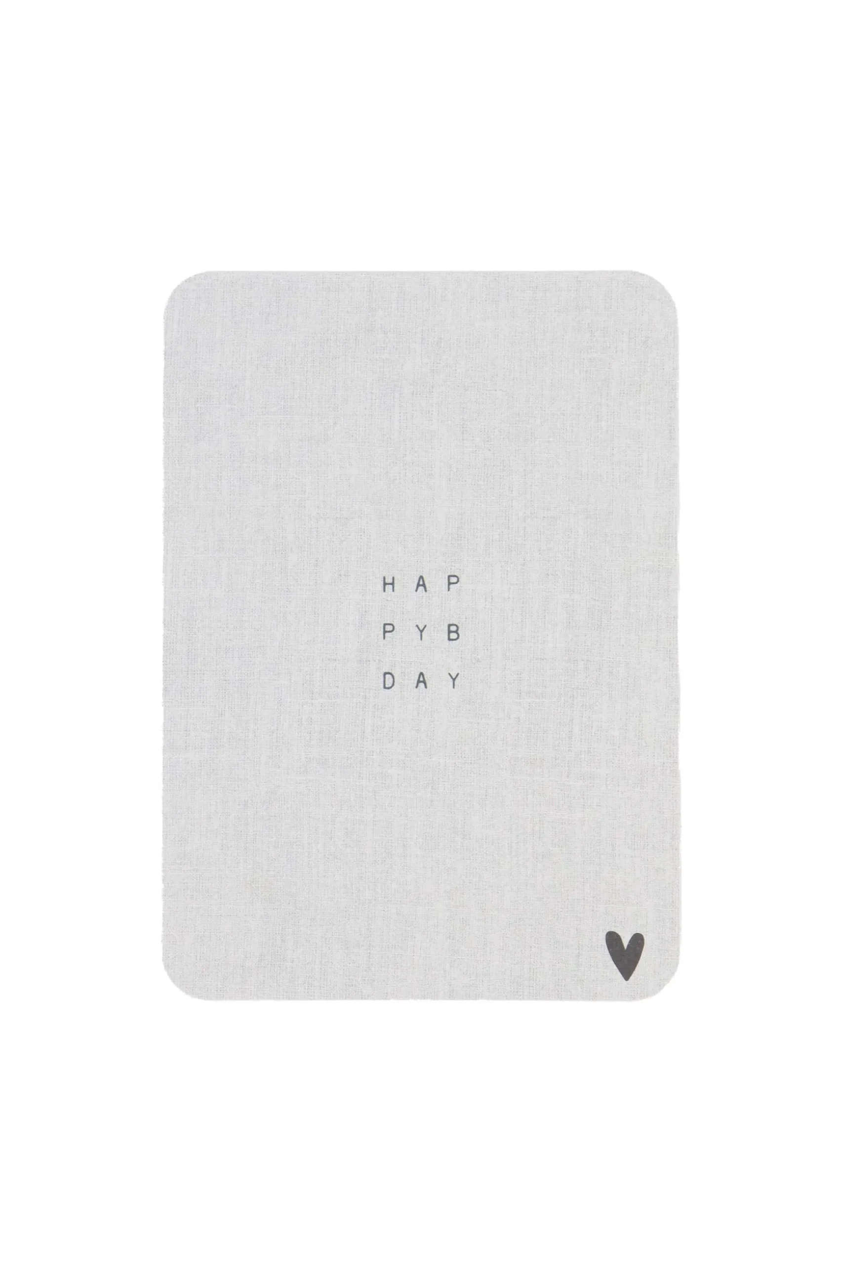 Zusss ansichtkaart ronde hoeken happy birthday linnen|Met een lief kaartje tover je al gauw een glimlach op iemands gezicht! Deze ansichtkaart van Zusss stuur is leuk voor elke jarige. De kaart heeft een linnenlook met daarop de tekst: happy bday en een Zusss hartje. Schrijf er een mooi boodschap op en stuur ‘m op. Om het plaatje helemaal compleet te maken combineer je deze kaart met een leuk Zusss kadootje!|Zusss: basic, stoer, uniek en een tikkeltje eigenwijs.