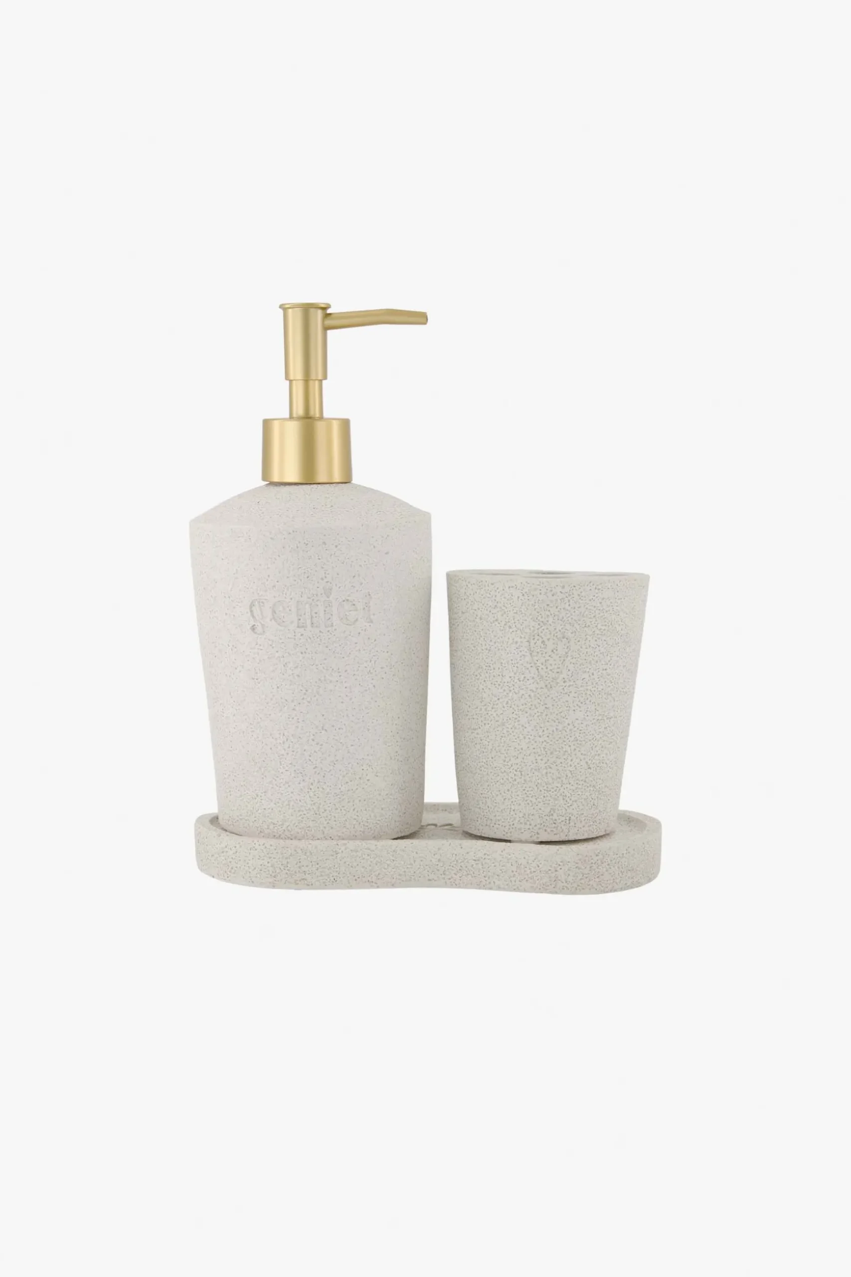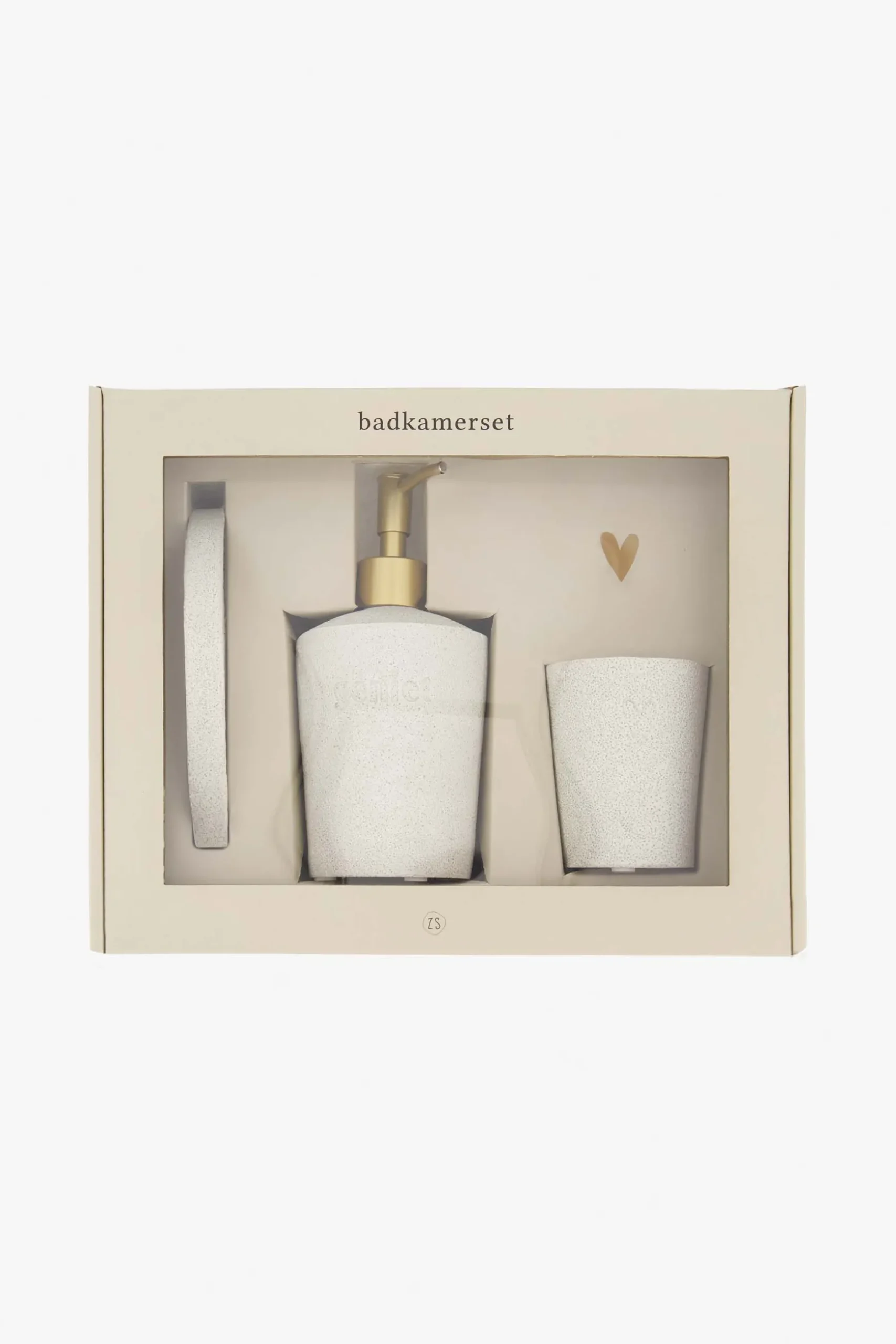 Zusss badkamerset zand|Met deze leuke badkamerset van Zusss maak jij jouw badkamer helemaal af! Deze set bestaat uit een 3 zandkleurige producten. Deze items zijn gemaakt van polyresin. Ook erg leuk om als kado te geven!Tip: neem ook een kijkje bij de Zusss verzorgingsproducten!|Zusss: basic, stoer, uniek en een tikkeltje eigenwijs.