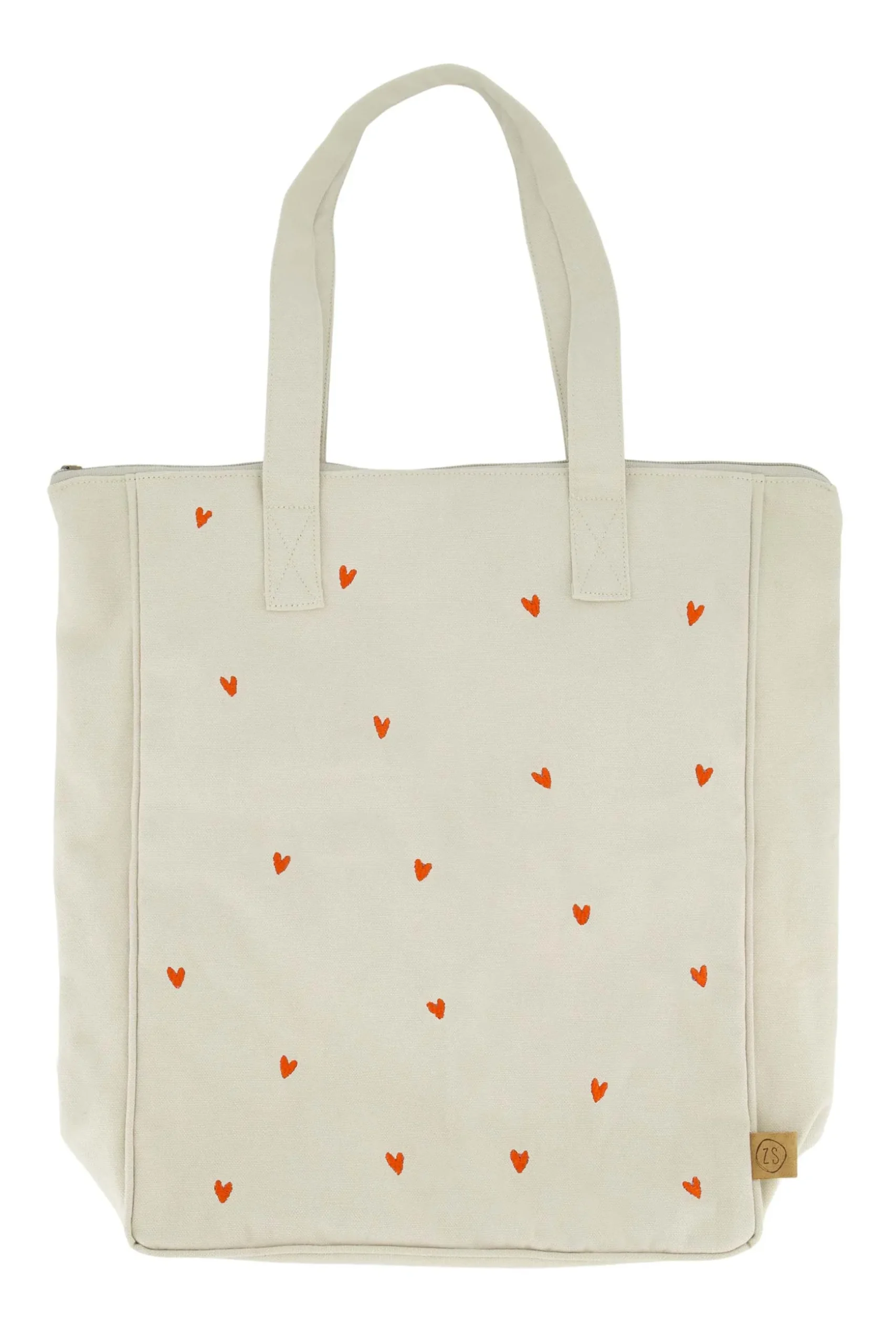Zusss boodschappentas hartje zand|Deze boodschappentas van Zusss is o zo handig! Perfect voor als je boodschappen gaat doen of bijvoorbeeld gaat picknicken. De boodschappentas is 41x34x10cm groot en gemaakt van 100% katoen. Op de zandkleurige tas staan koraalroze Zusss hartje. Je vind het Zusss logo op het PU labelte aan de zijkant. De tas sluit met een rits, wel zo handig! Neem ook eens een kijkje bij de Zusss mooimakers.Welke vallen in de smaak?|Zusss: basic, stoer, uniek en een tikkeltje eigenwijs.