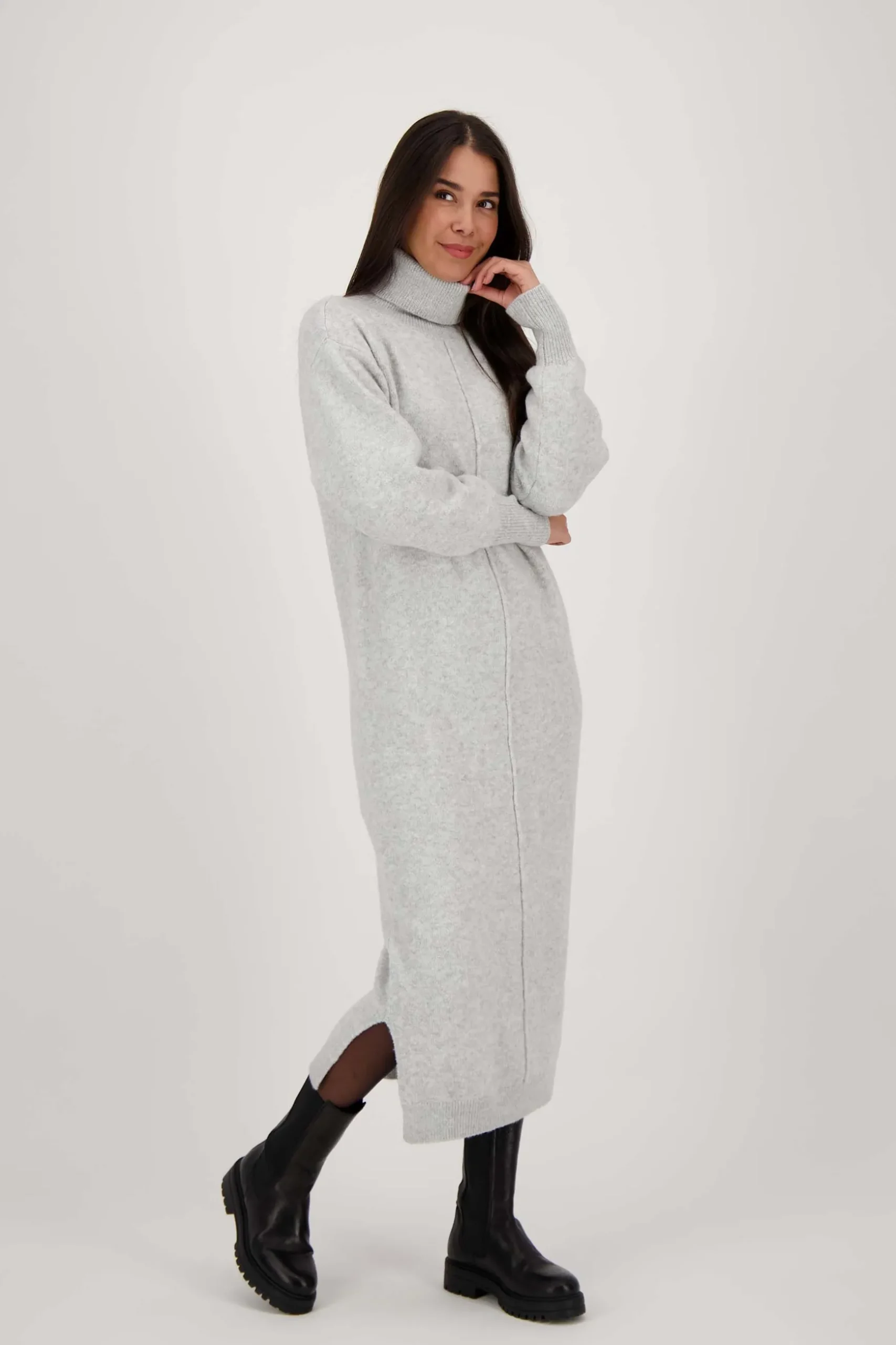 Zusss brei jurk met wijde mouwen lichtgrijs|Deze gebreide jurk van Zusss trek je het liefst nooit meer uit. Combineer ´m bijvoorbeeld met een panty en stoere laars! Deze leuke jurk heeft een warme col, lange mouwen en is lekker lang. Zoo comfortabel! Deze jurk is gemaakt van 72% polyester, 21% acryl en 4% spandex. Neem ook eens een kijkje bij de Zusss mooimakers.|Zusss: basic, stoer, uniek en een tikkeltje eigenwijs.