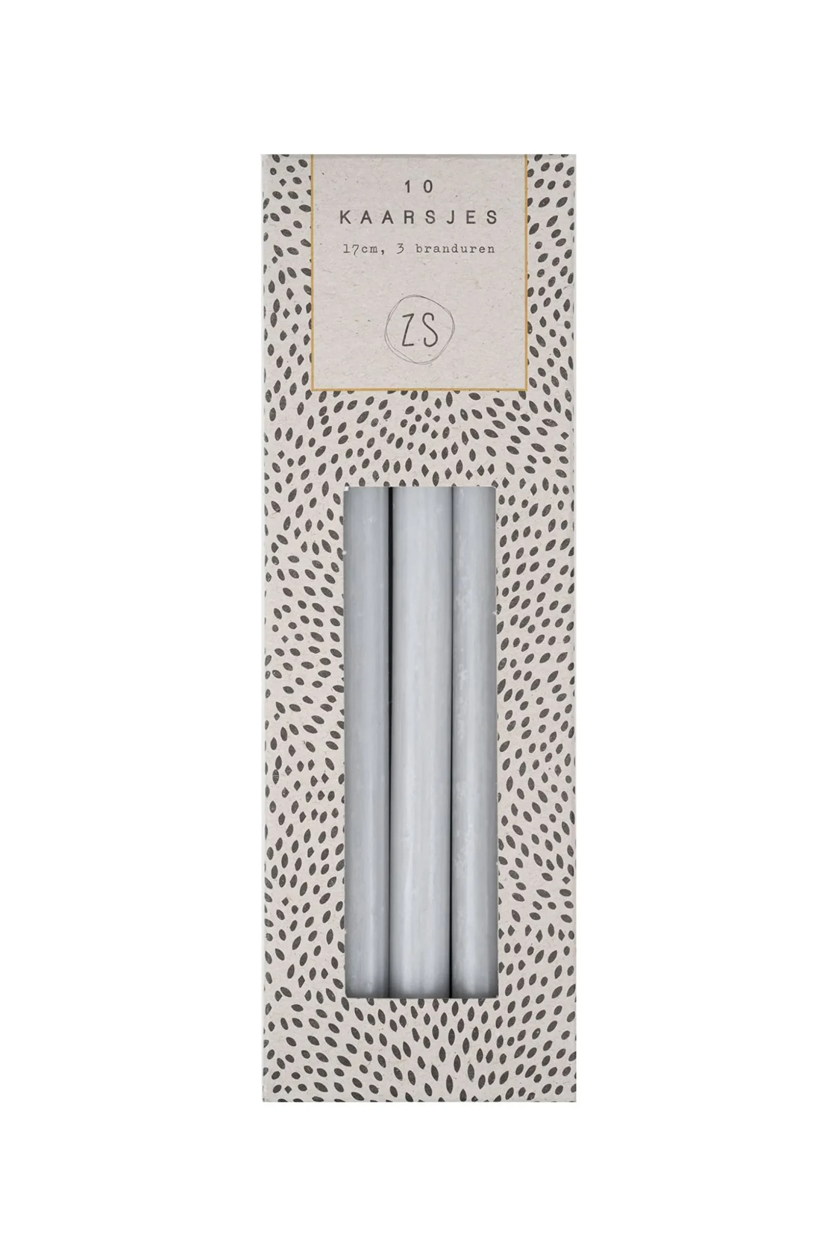 Be the first to review “zusss doosje met 10 smalle kaarsjes lichtgrijs” Reactie annuleren