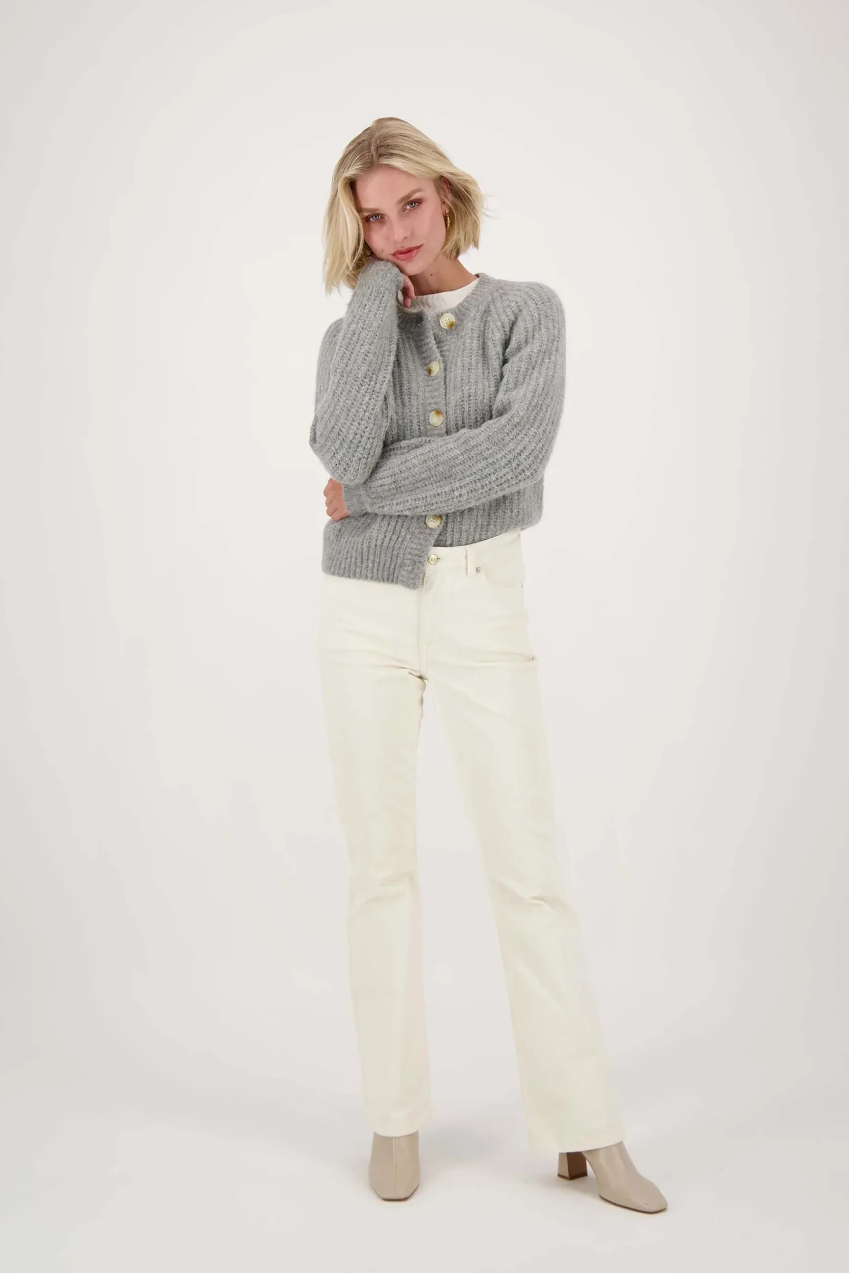 Zusss gebreid vest in bomber style lichtgrijs|Dit Zusss vest is een perfecte combi tussen casual en chic. Dit lichtgrijze vest is moeiteloos te combineren met allerlei outfits. Met de knoopjes dicht, als truitje op een jeans of als vest over een mooie top. Het vest is gebreid in bomber style en heeft lange mouwen. Je kunt het vest sluiten aan de voorzijde met 6 knopen. Dit item is gemaakt van 55% acetaat, 10% gerecyceld polyester en 12% nylon. Vergeet niet om een kijkje te nemen bij de Zusss mooimakers om je outfit af te maken. Welk item is jouw favoriet?|Zusss: basic, stoer, uniek en een tikkeltje eigenwijs.
