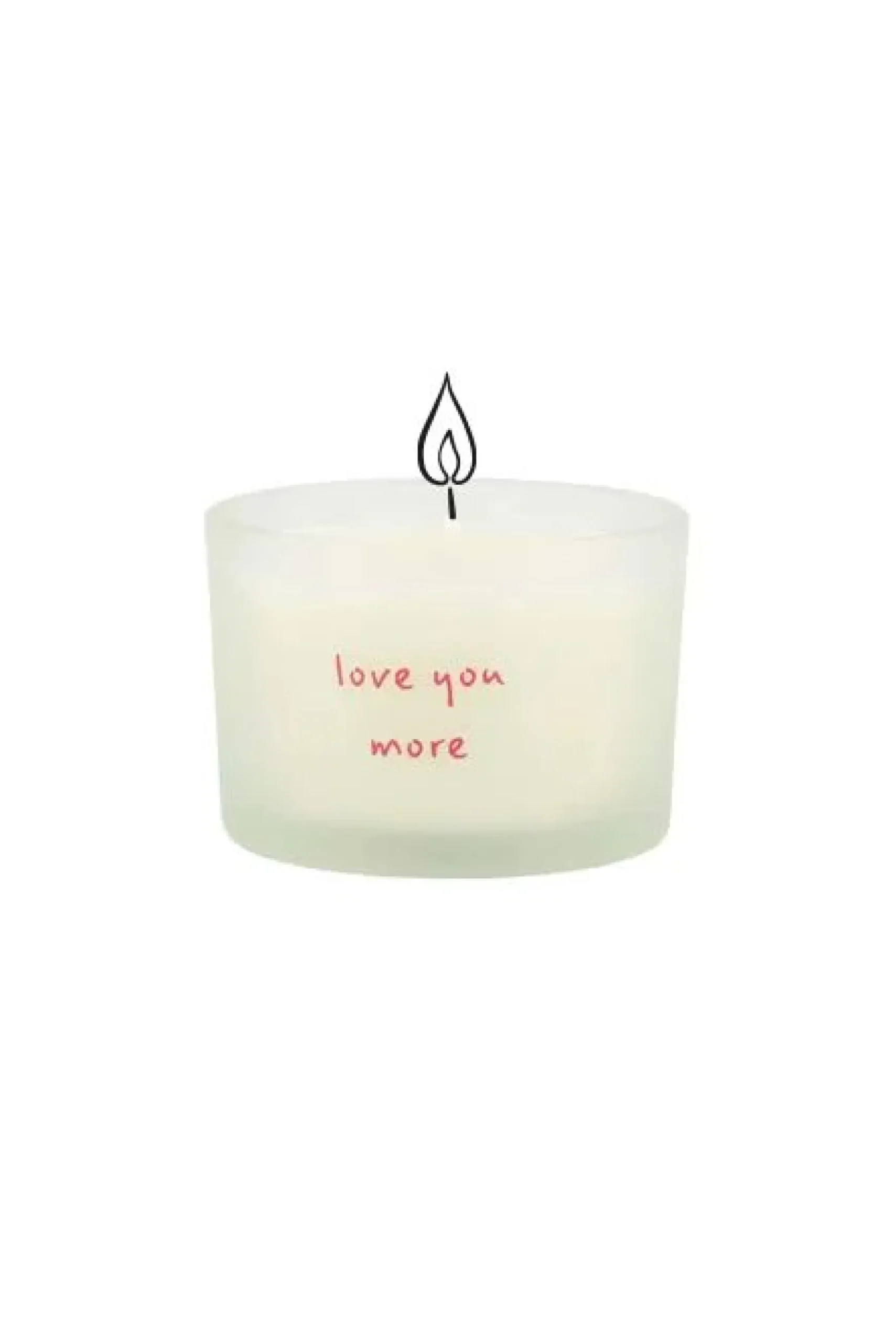 Zusss geurkaars in wikkel love you more wit/rood|Deze geurkaars van Zusss schreewt liefde, en het staat er ook gewoon op. Deze geurkaars verspreidt de geur van warm wool, wat zorgt voor een gezellige, winterse sfeer in huis. De geurkaars zit in een glaasje waarop de tekst ‘love you more’ staat. Om de kaars zit een wikkel met dezelfde tekst. Dit kaarsje heeft ca 16 branduren. Aan wie geef jij deze leukerd kado? |Zusss: basic, stoer, uniek en een tikkeltje eigenwijs.