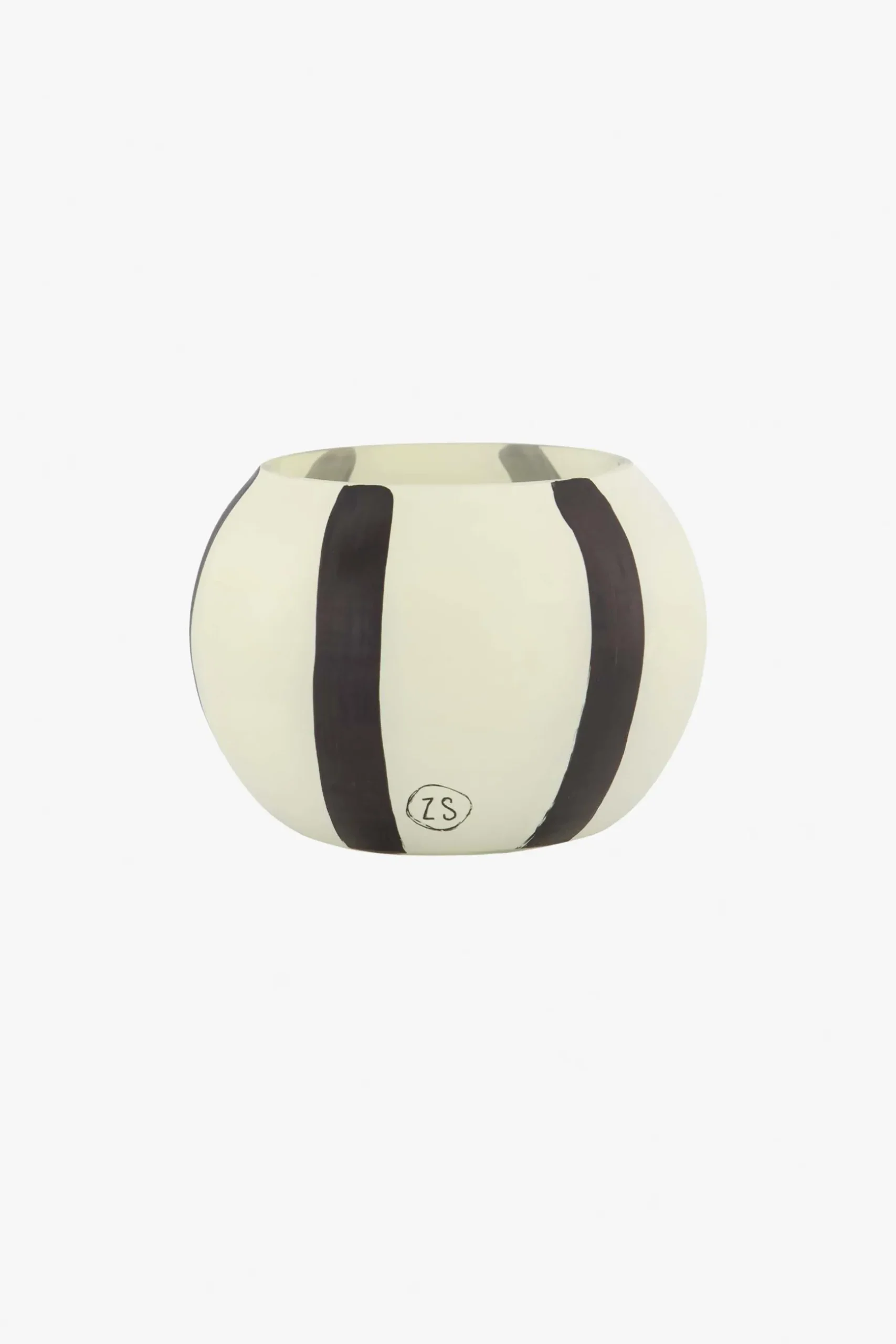 Zusss glazen geurkaars met strepen zand antraciet|Deze glazen geurkaars van Zusss is een fijne sfeermaker in huis. Een basic item maar door de antracietkleurige strepen zeker niet saai. Erg leuk om te combineren met een hogere kaarsenhouder of kandelaar. Deze kaars verspreid een heerlijke geur in je kamer! De doorsnede van deze geurkaars is 9 cm en de hoogte 7 cm. Ook erg leuk als kado! |Zusss: basic, stoer, uniek en een tikkeltje eigenwijs.