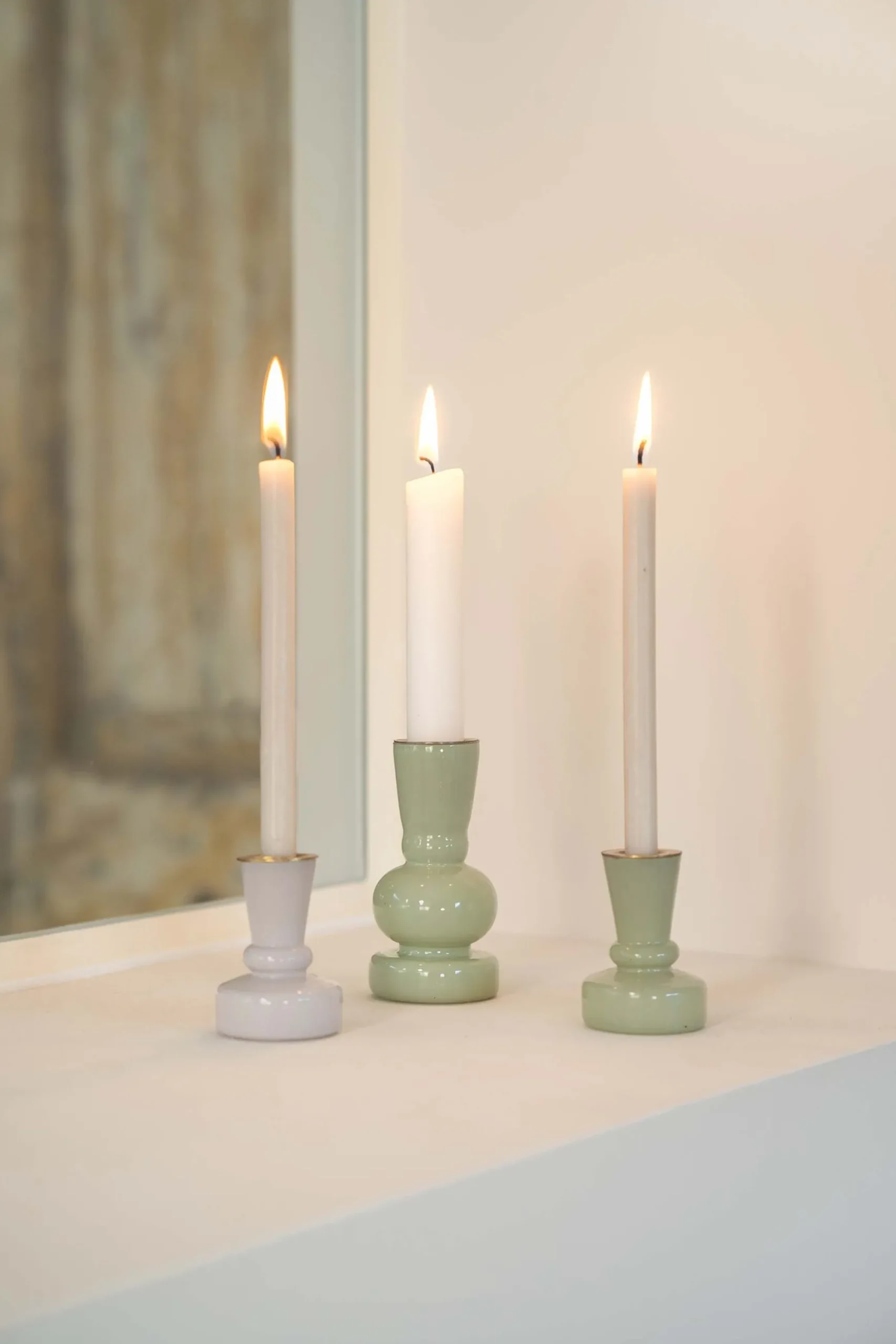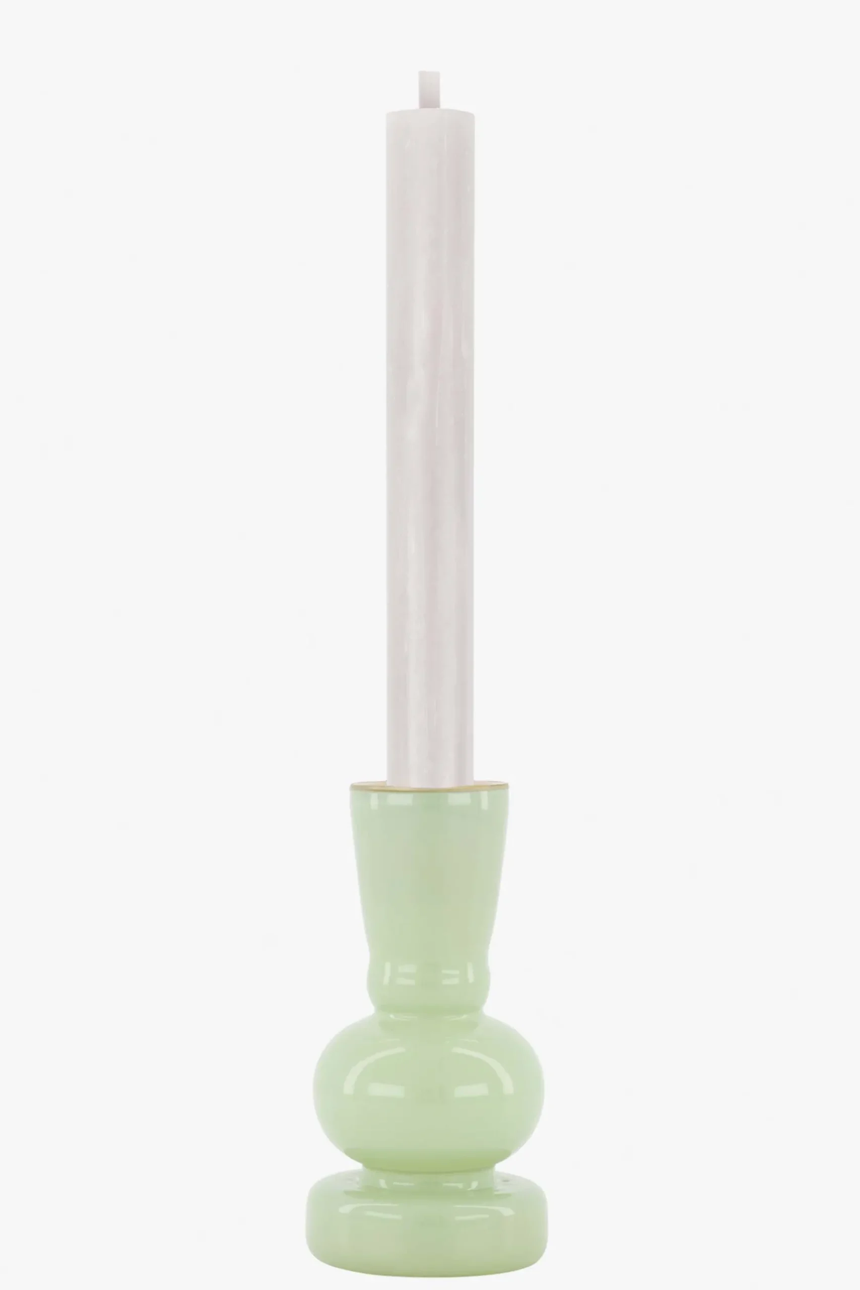 Zusss glazen kandelaar M saliegroen|Deze glazen kandelaar is prachtig in z’n soort. De kandelaar is gemaakt van glas en is saliegroen van kleur. Een fris kleurtje die jouw interieur opvrolijkt! In deze kandelaar passen de rustieke Zusss kaarsen van 12cm en 20cm, en de geribbelde Zusss kaarsen van 20cm. De doorsnede van de kandelaar is 5 cm en de hoogte is 10 cm. Ook leuk om te combineren met andere Zusss kaarsenhouders! |Zusss: basic, stoer, uniek en een tikkeltje eigenwijs.