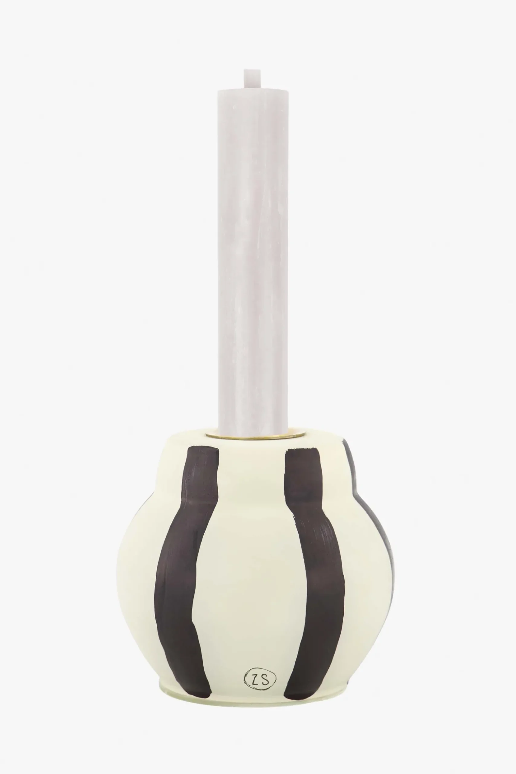 Zusss glazen kandelaar met strepen zand/antraciet|Jaaa, dit pareltje wil je hebben! Deze glazen kandelaar van Zusss is lekker vrolijk. Zet hierin gezellig een kaarsje aan tijdens het diner of gewoon als je met je theetje op de bank zit. Deze zand en antraciet gestreepte kandelaar brengt je helemaal in de voorjaarssferen. In deze kandelaar passen de rustieke Zusss kaarsen van 12cm en 20cm, en de geribbelde Zusss kaarsen van 20cm. De kandelaar heeft een doorsnede van 9 centimeter en is 8,5 centimeter hoog. Ook erg leuk als kadootje! |Zusss: basic, stoer, uniek en een tikkeltje eigenwijs.