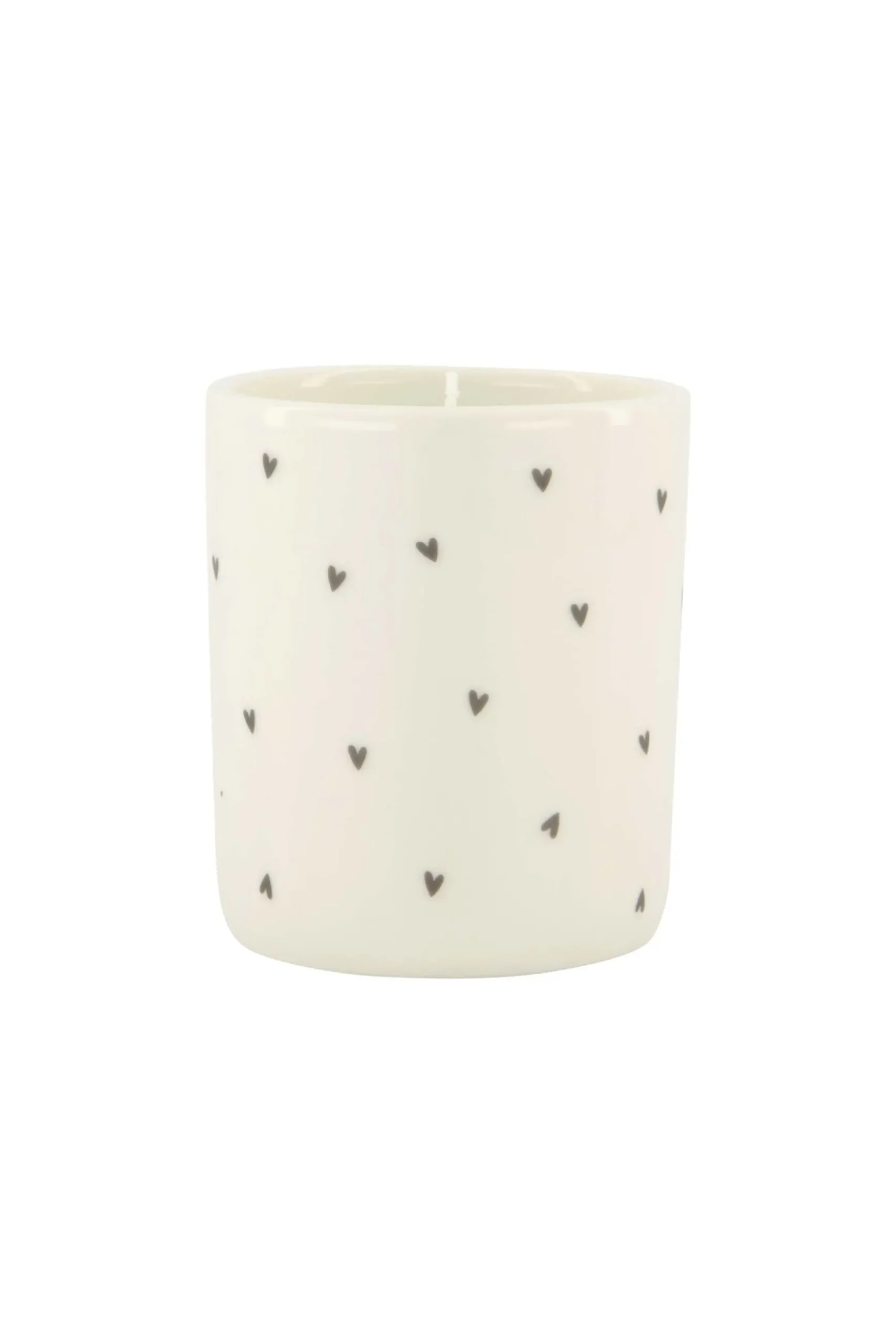 Zusss keramieken geurkaars hartjes M wit/antracietgrijs|Welk seizoen het ook is, iedereen wordt blij van gezellige kaarsjes. Deze geurkaars van Zusss zit in een witte vorm van keramiek. Op het glimmende keramiek staan antracietgrijze hartjes. Steek ‘m aan met een Zusss lucifer en geniet van de heerlijke geur ‘warm wool’ wat zorgt voor een gezellige, winterse sfeer in huis. Dit item is ook erg leuk als kadootje! |Zusss: basic, stoer, uniek en een tikkeltje eigenwijs.