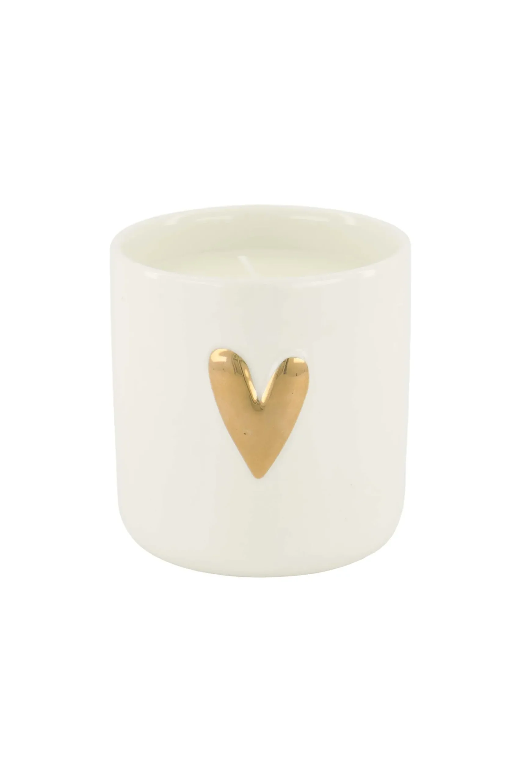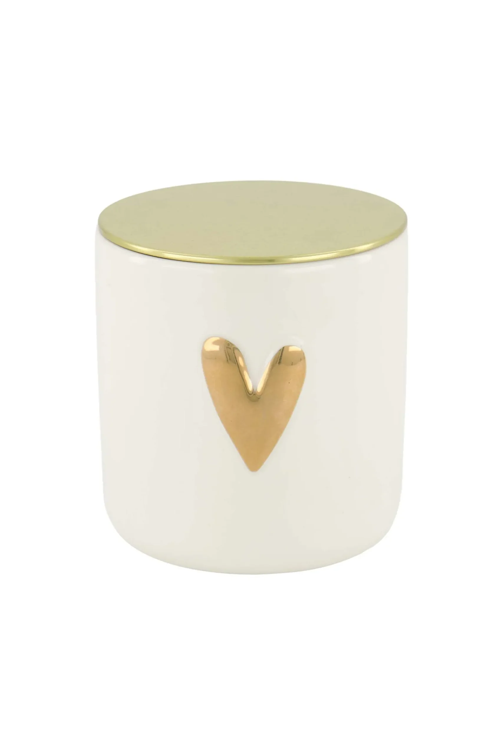 Zusss keramieken geurkaars linnen goud hartje wit|Dit Zusss kaarsje straalt liefde uit en laat je huis heerlijk ruiken naar fresh linen. Op het witte keramiek staat een goud hartje. Met het deksel kun je de geurkaars afsluiten, ideaal! Het formaat van deze geurkaars is 10x11cm en heeft ca 50 branduren. Ook erg leuk als kado!|Zusss: basic, stoer, uniek en een tikkeltje eigenwijs.