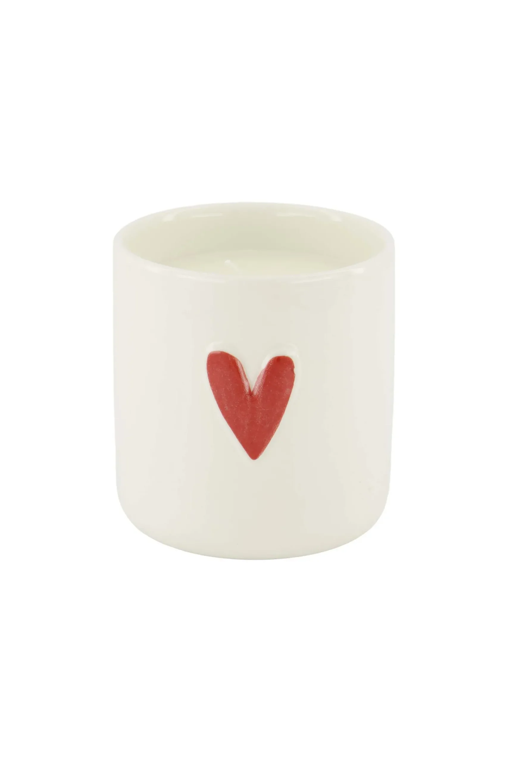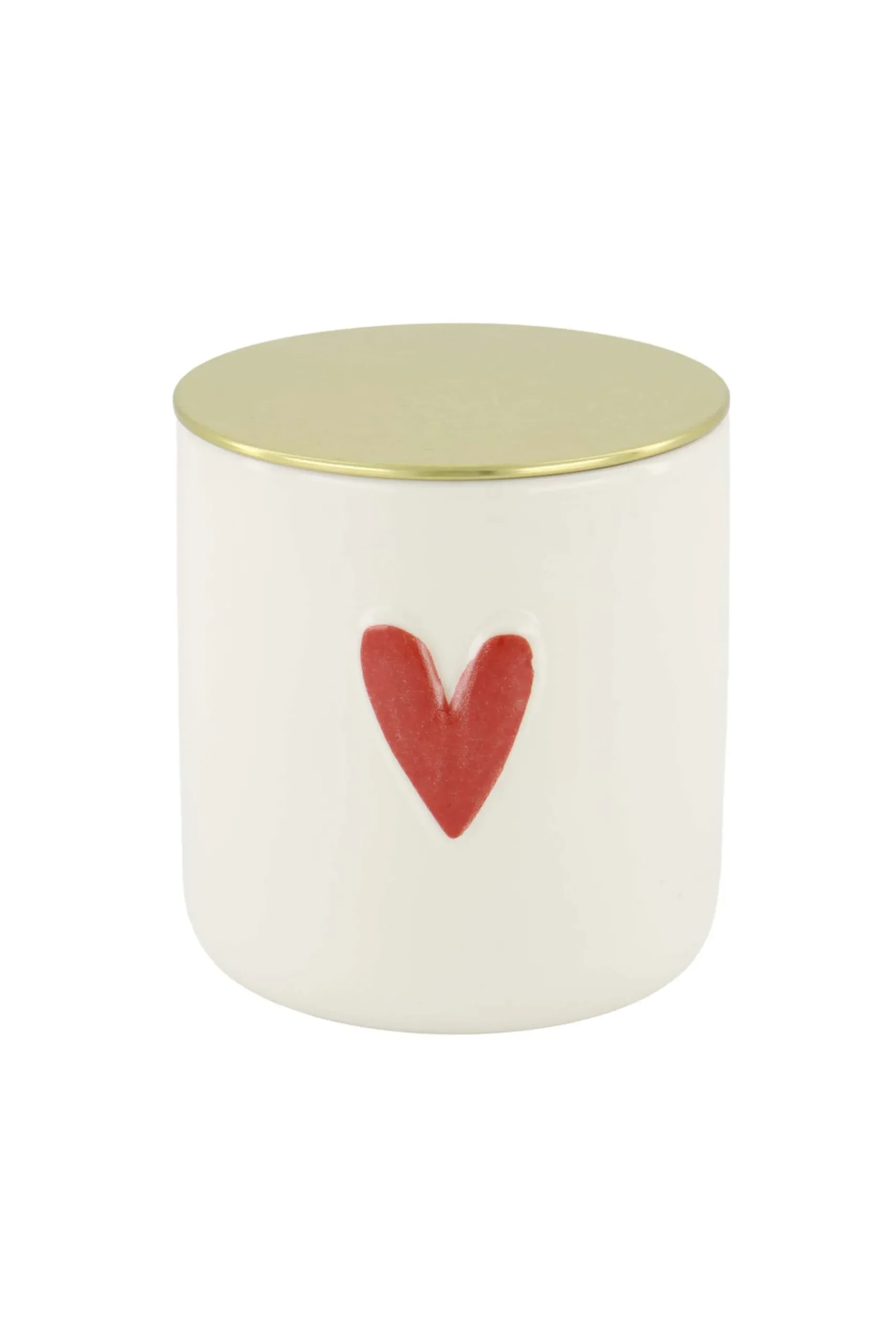 Zusss keramieken geurkaars linnen rood hartje wit|Dit Zusss kaarsje straalt liefde uit en laat je huis heerlijk ruiken naar fresh linen. Op het witte keramiek staat een rood hartje. Met het deksel kun je de geurkaars afsluiten, ideaal! Het formaat van deze geurkaars is 10x11cm en heeft ca 50 branduren. Ook erg leuk als kado!|Zusss: basic, stoer, uniek en een tikkeltje eigenwijs.