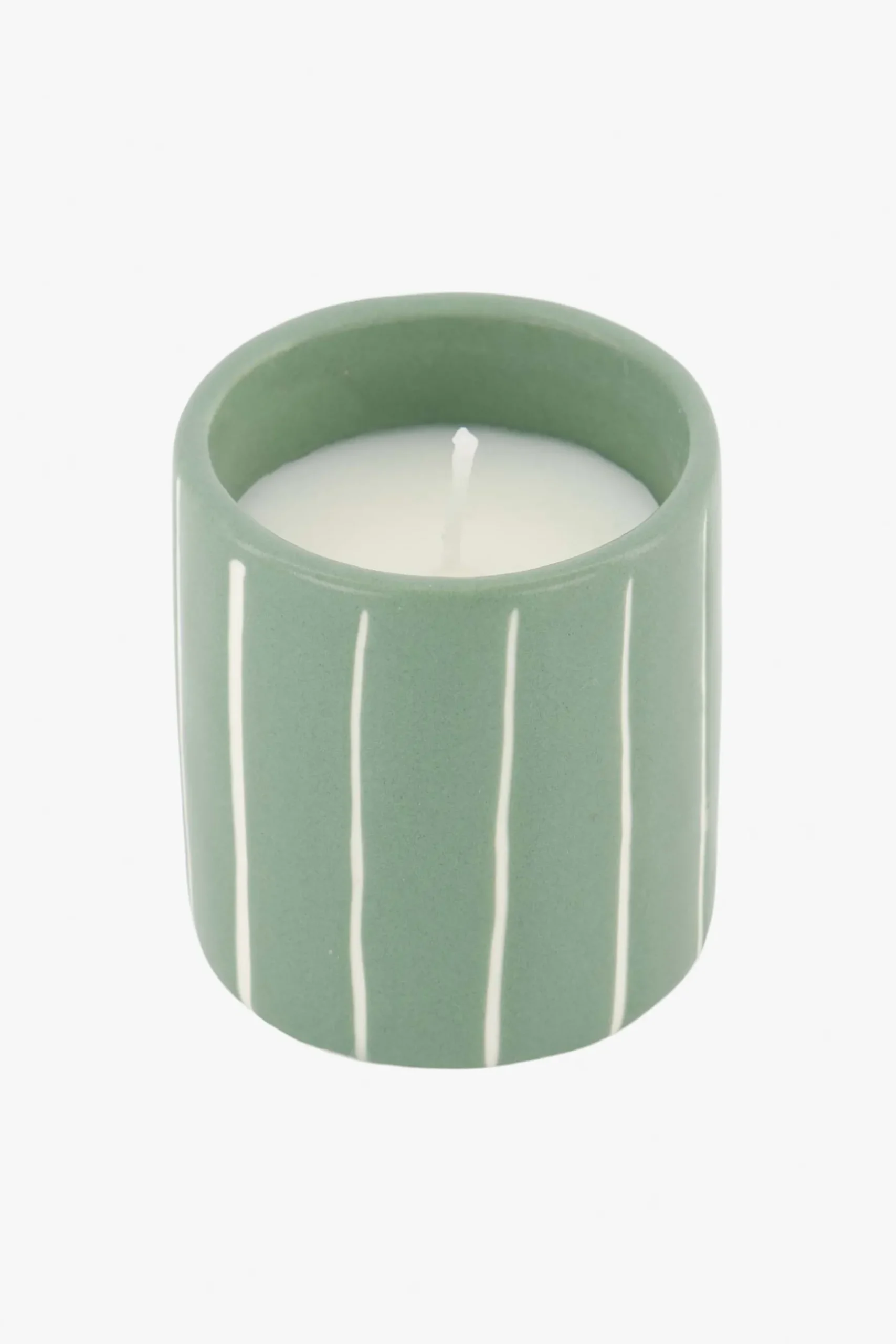 Zusss keramieken geurkaars met houten deksel klavertje salie|Keramieken geurkaars van Zusss met houten deksel. Deze leuke geurkaars laat je woonkamer heerlijk ruiken! Het saliegroene keramiek heeft subtiele witte streepjes rondom. In het deksels zijn een klavertje en het logo van Zusss gebrand. Met dit houten deksel kun je de geurkaars afsluiten, ideaal! De doorsnede van deze geurkaars is 8 cm en de hoogte 9,5 cm. Tip: geef dit potje geluk kado! |Zusss: basic, stoer, uniek en een tikkeltje eigenwijs.