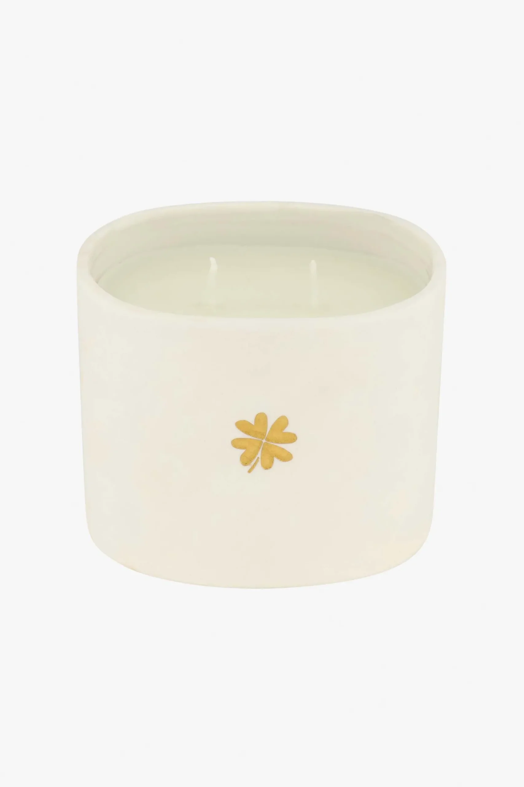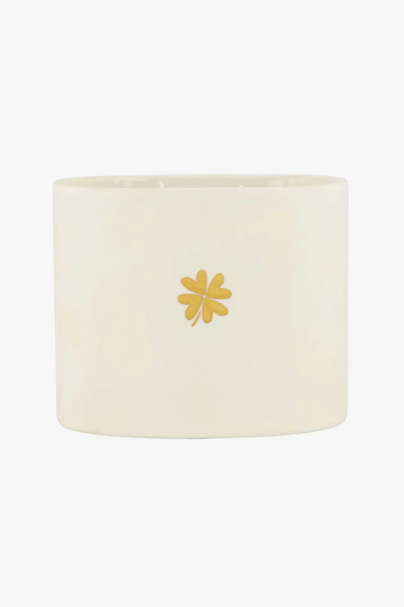 Zusss keramieken luxe geurkaars jasmijn klavertje|De vorm van deze geurkaars is net even anders dan normaal. Het is namelijk een ovalen kaars met meerdere lontjes. De kaars is in een keramieken vorm gegoten en heeft twee lontjes om ‘m aan te steken. Op de voorkant van de witte kaars staat een goudkleurig klavertje. De doorsnede van deze geurkaars is 11,5 cm en de hoogte 9 cm. Aan wie geef jij deze geurkaars kado ?|Zusss: basic, stoer, uniek en een tikkeltje eigenwijs.