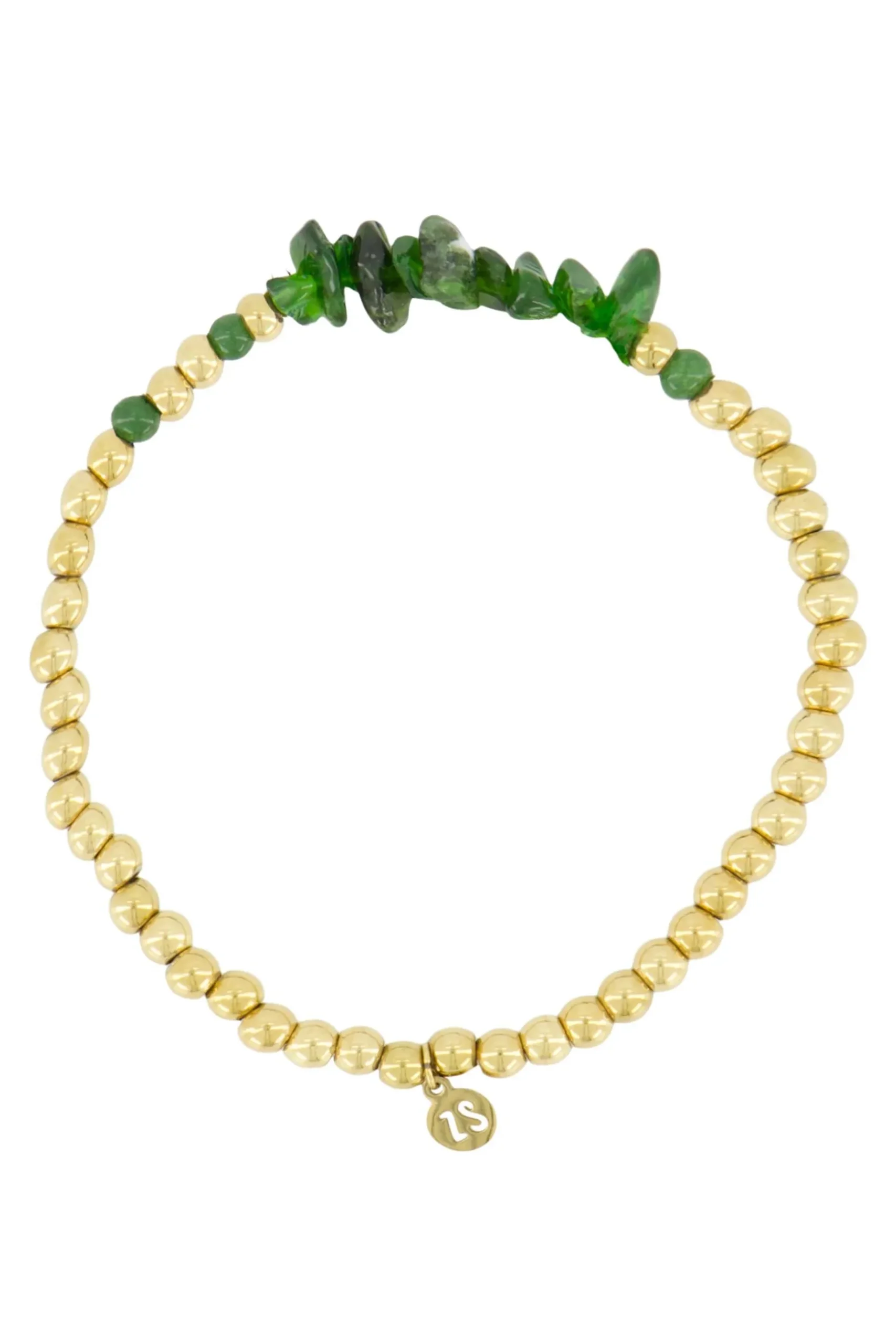 Zusss kralenarmband met glassteen donkergroen|Dit gouden armbandje van Zusss is zoo fijn! Door het elastiek krijg je ‘m gemakkelijk om je pols. De donkergroene glassteentjes maken ‘m helemaal af! Bij welke outfit ga jij ‘m dragen? Het armbandje is 17 cm lang. Dit item is gemaakt van glassteen en steenless steel, hierdoor verkleurt deze niet. Neem ook een kijkje bij de andere mooimakers van Zusss!|Zusss: basic, stoer, uniek en een tikkeltje eigenwijs.
