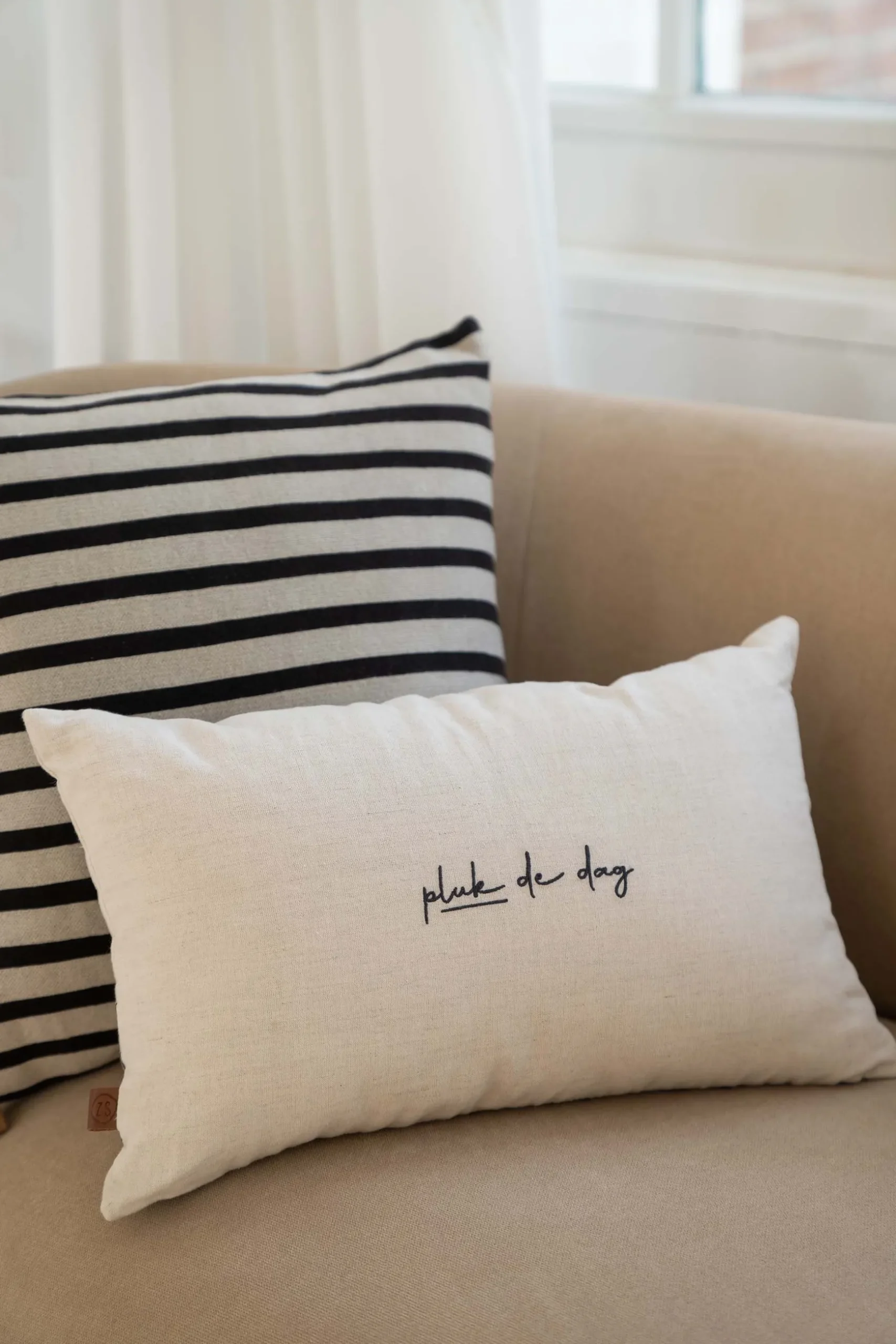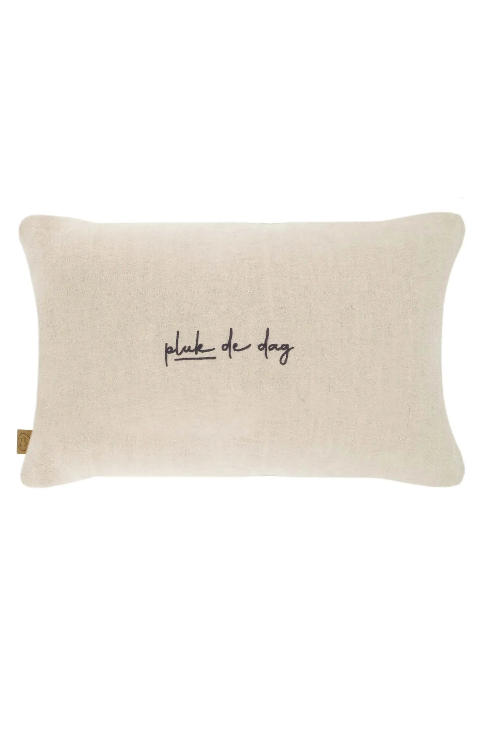 Zusss kussen bloemen silhouet borduur 50x30cm zand|Dit sjieke kussen van Zusss is perfect voor jouw bank. Wat een gave borduursels! Dit zandkleurige kussen heeft op de voorkant een geborduurde bloemen en op de achterkant staat de tekst: pluk de dag. Dit item is gemakkelijk te combineren met allerlei kleuren, handig! Dit kussen is gemaakt van 50% katoen en 50% linnen. Het kussen is 50cm breed en 30cm hoog. Het Zusss logo vind je terug op het PU labeltje aan de zijkant van het kussen. Vergeet niet een kijkje te nemen bij de Zusss kussens. Welke match jij met elkaar?|Zusss: basic, stoer, uniek en een tikkeltje eigenwijs.