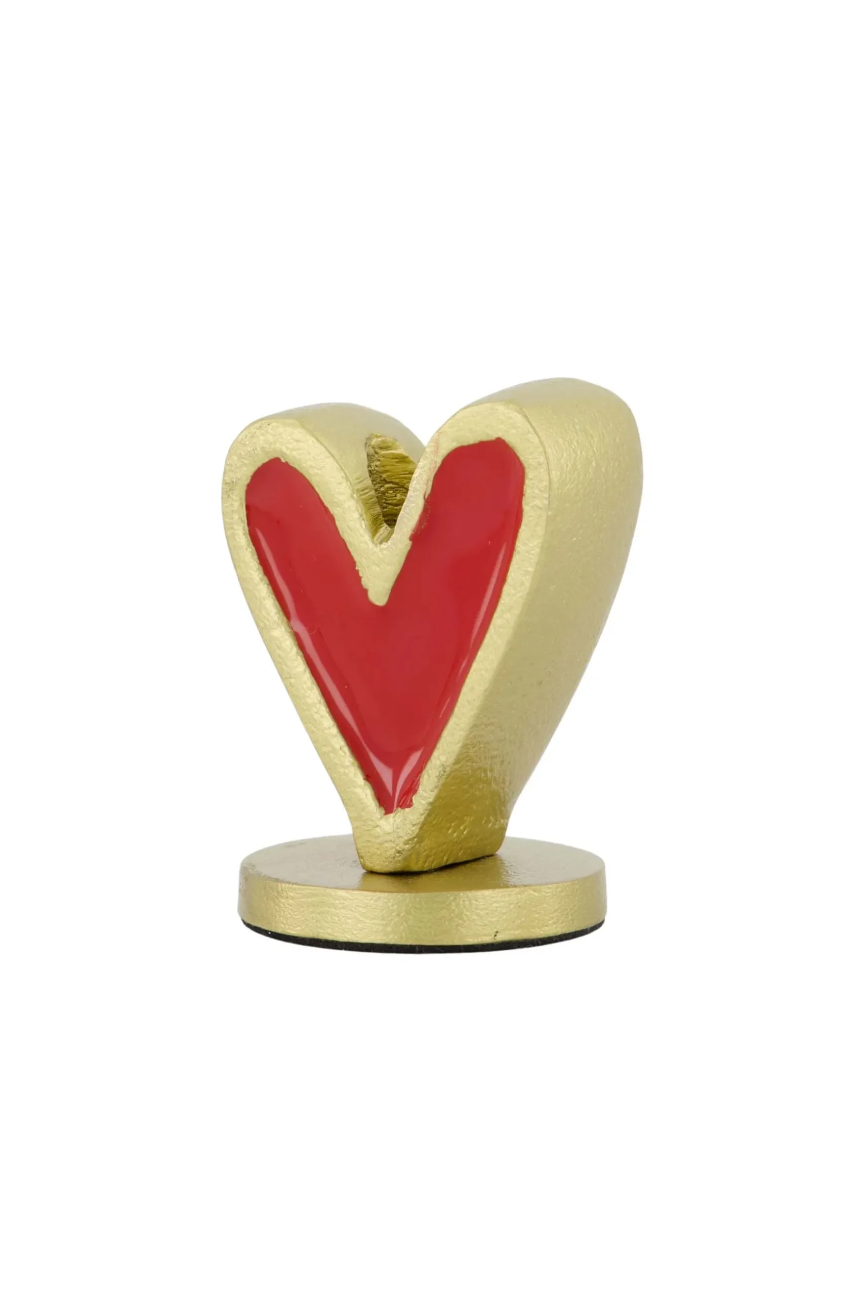 Zusss metalen kandelaar hartje goud|Een metalen hartje als kandelaar, zo’n speels exemplaar vind je alleen maar bij Zusss! Het kandelaartje is goud van kleur en het hartje is rood van binnen. In dit kandelaartje passen de smalle Zusss kaarsen van 17cm , deze worden in doosjes van 10 stuks verkocht. Dit leuke item heeft een formaat van 7x5cm. Neem vooral een kijkje bij de rest van de Zusss woonaccessoires!|Zusss: basic, stoer, uniek en een tikkeltje eigenwijs.