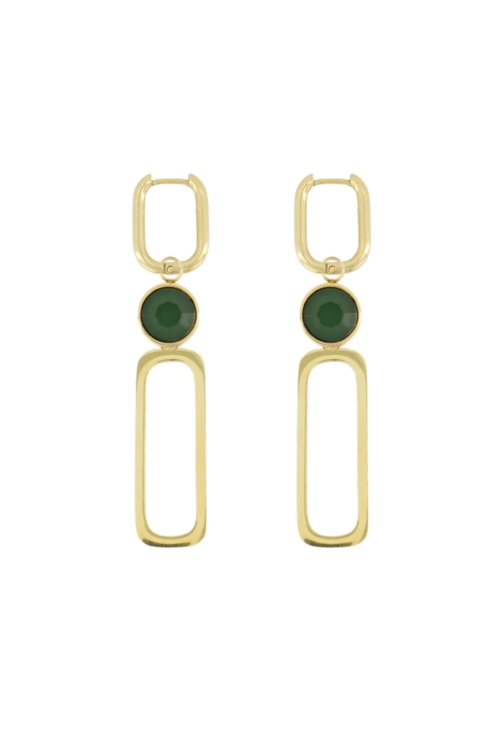 Zusss oorbel met glassteen donkergroen|Deze oorbellen van Zusss zijn zo gaaf! De oorbellen zijn rechthoeking en lekker fleurig door het donkergroene glassteentje. Wat een leukerds! Combineer ze met andere mooimakers met een donkergroen detail! De oorbellen zijn gemaakt van stainless steel en verkleurden hierdoor niet. De oorbellen zijn 6,1cm lang en 1,2cm breed. Met deze leuke dingen val jij op! Ook leuk om kado te geven!|Zusss: basic, stoer, uniek en een tikkeltje eigenwijs.