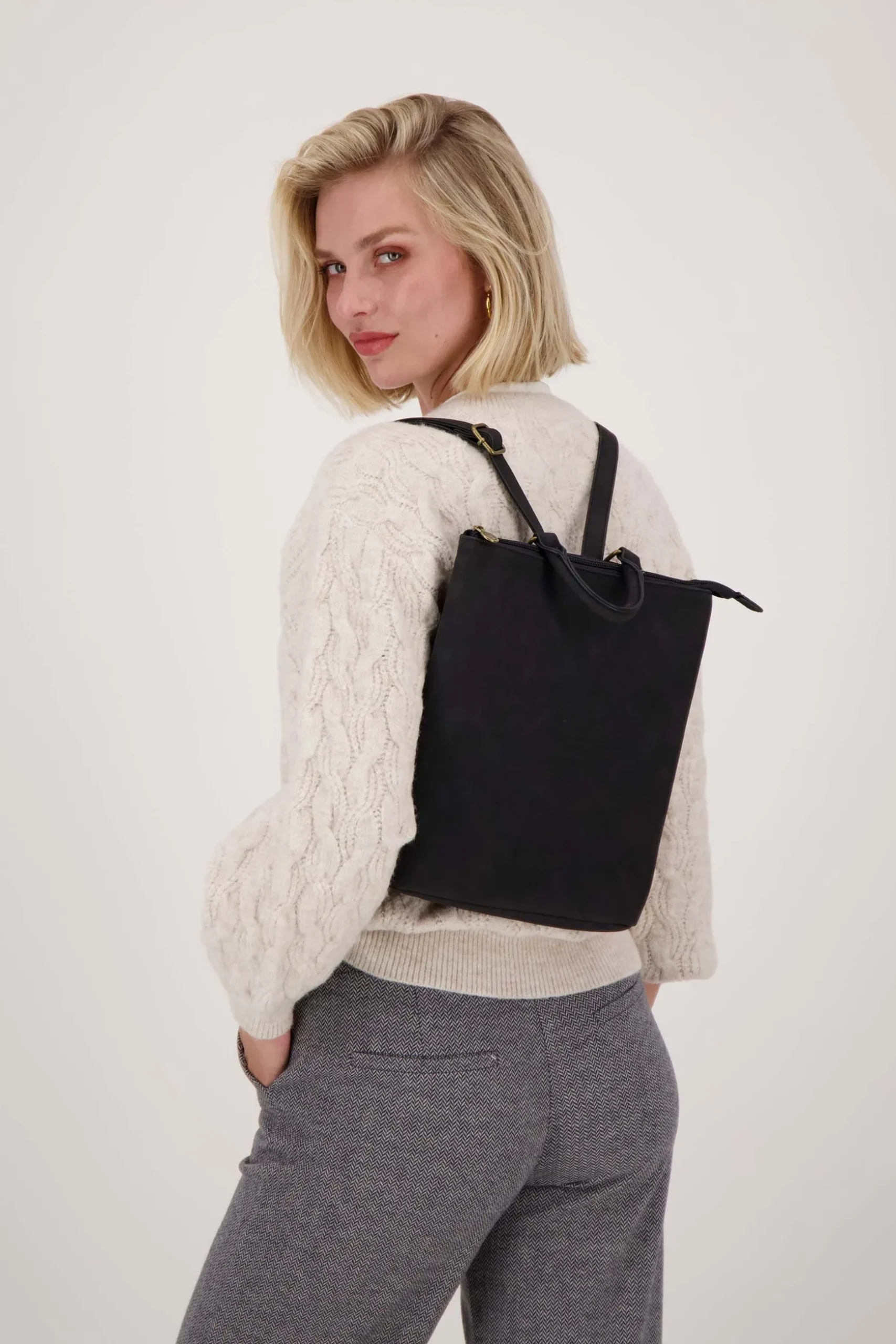 Zusss rugtas zwart|Een ideale Zusss rugtas voor een dagje uit. Dit fijne formaat is erg fijn om te dragen. Deze zwarte tas is passend voor elke gelegenheid. De tas is 30x30x9cm groot en gemaakt van PU leer. Neem de tas mee voor een boodschap, wandeling of naar kantoor. De rugtas sluit aan de bovenkant met een rits. Aan de ritssluiting zit een gouden muntje met daarop het Zusss logo. Ook vind je het logo op het PU labeltje aan de zijkant van de tas. Aan de achterkant zit een ritsvakje, handig! Ook vind je aan de binnenkant een ritsvakje en twee telefoonvakjes. Neem ook eens een kijkje bij de Zusss mooimakers.Welke maakt jouw outfit af?|Zusss: basic, stoer, uniek en een tikkeltje eigenwijs.