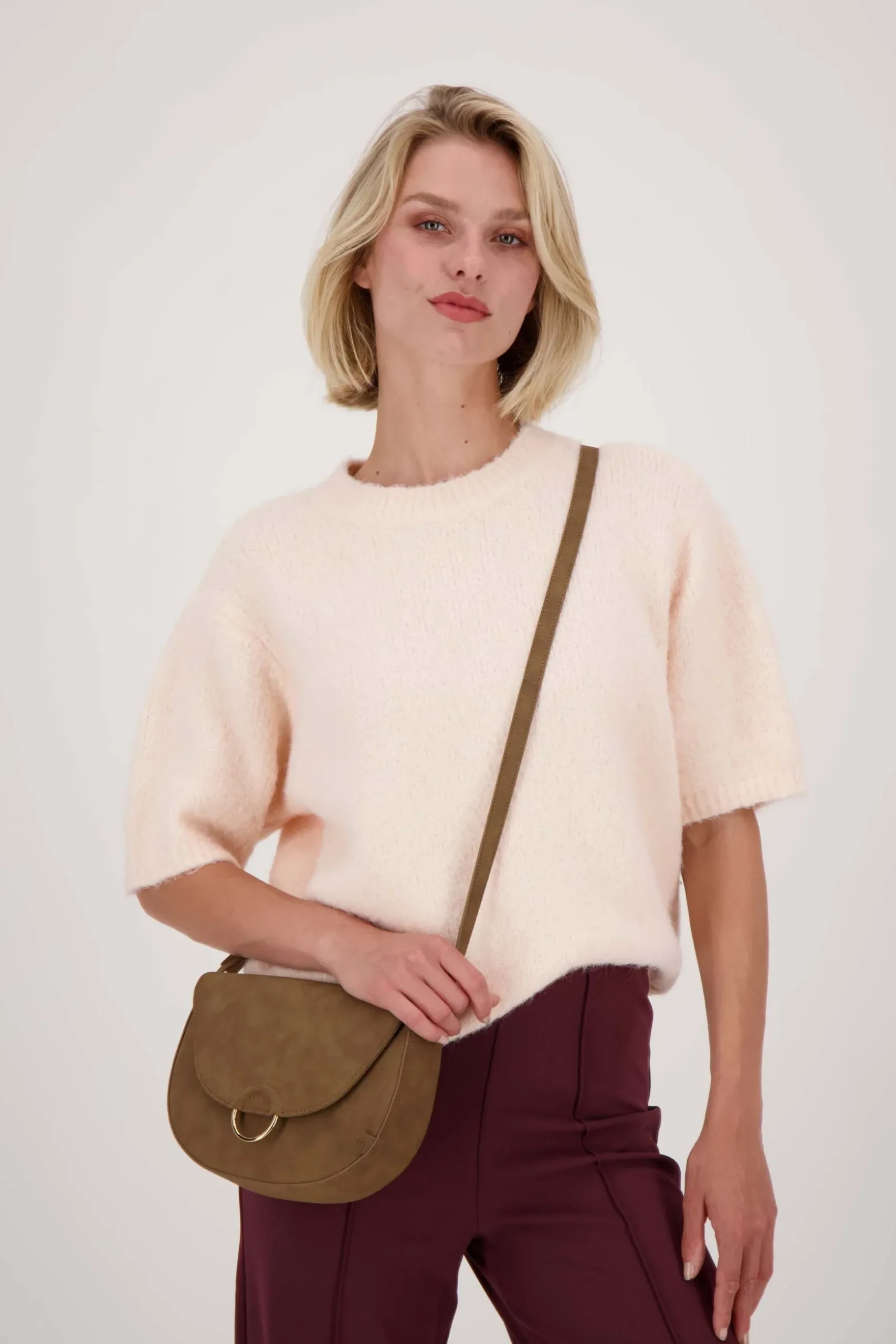 zusss schoudertas met gouden ring taupe