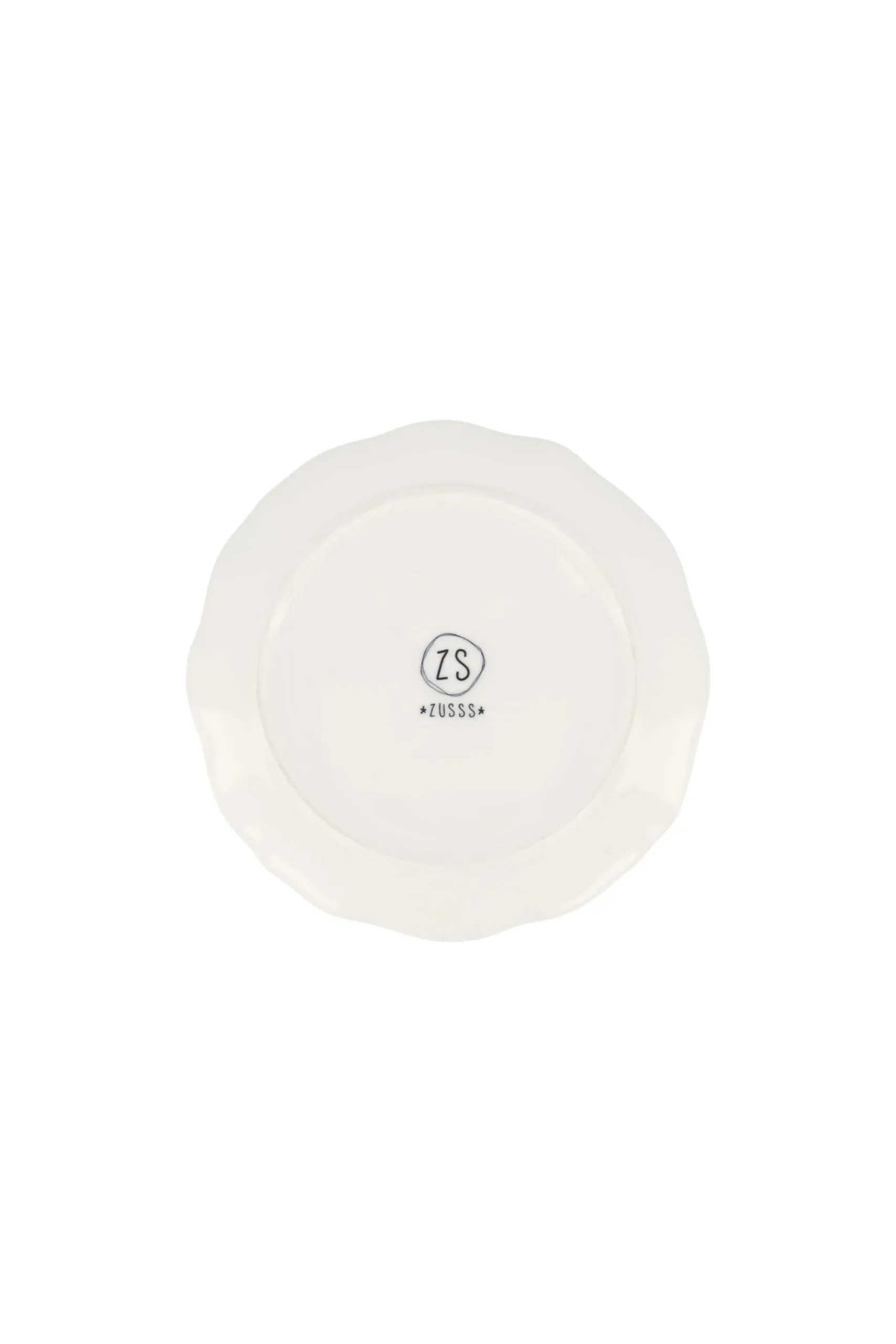Zusss serveerschaaltje geschulpte rand mistletoe wit|Met dit serveerschaaltje van Zusss wordt serveren een nog groter feestje! Deze keramieken serveerschaal is wit en voorzien van een donkerrood randje. De geschulpte rand maakt ‘m nog net wat specialer. Op het midden staat een mistletoe takje. Perfect voor het tijdens het najaar en de kerst! Dit item heeft een doorsnede van 20cm en is 1,5cm hoog. Op de onderkant van dit serveerschaaltje staat het Zusss logo. Tip: neem ook eens een kijkje bij de Zusss woonaccessoires! |Zusss: basic, stoer, uniek en een tikkeltje eigenwijs.