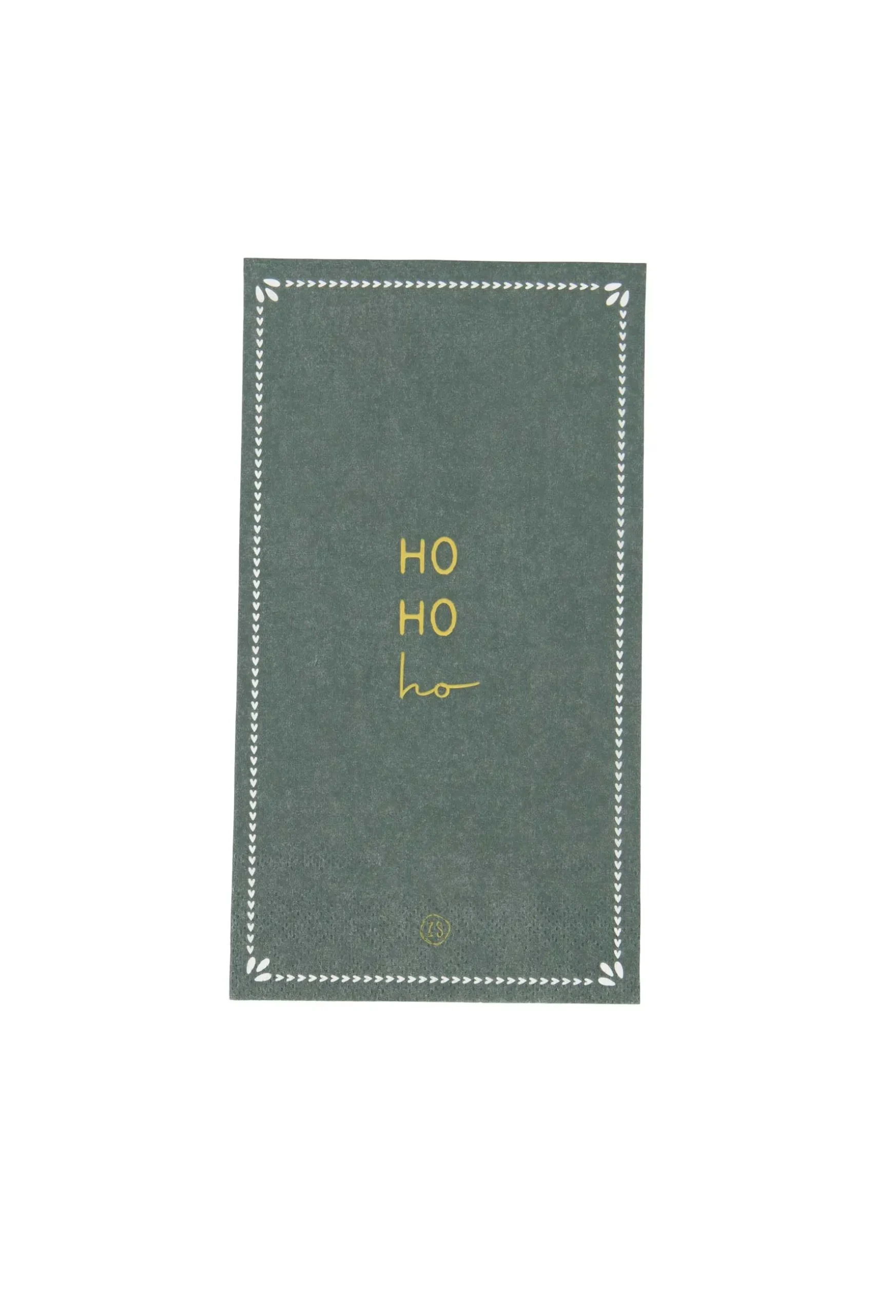 Zusss servetten hohoho/ster 11x20cm donkergroen|Gezellige Zusss servetten voor tijdens een knus diner. Deze donkergroene servetten hebben twee verschillende kanten, ideaal! Op de voorkant staat ‘ho ho ho’ en op de achterkant een ster met daaronder het Zusss logo. Perfect voor tijdens het kerstdiner! De servetten worden geleverd in een pakje met 15 stuks en zijn 11x20cm groot. Ook erg leuk als kerstkado! |Zusss: basic, stoer, uniek en een tikkeltje eigenwijs.