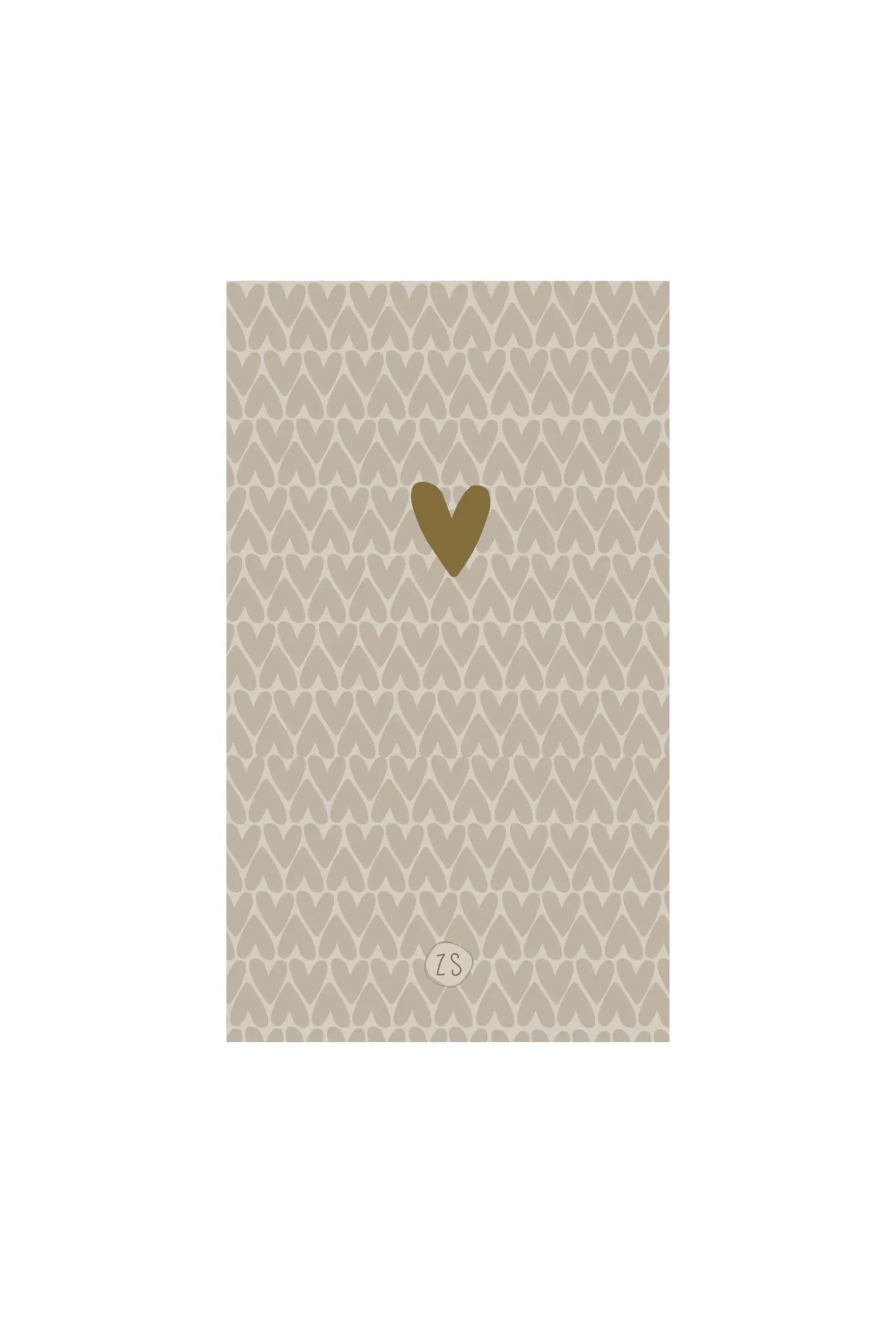 Zusss servetten rechthoek 11x20cm hartjes zand|Wat maakt een dekte tafel nou helemaal af? Hippe servetten van Zusss natuurlijk! Deze papieren servetten hebben een o zo leuke hartjes print. Deze leukerds maken het tafelen nog gezelliger! De zandkleurige servetten worden geleverd in een pakje van 15 stuks en zijn 11x20cm groot. Ook erg leuk als kadootje!|Zusss: basic, stoer, uniek en een tikkeltje eigenwijs.