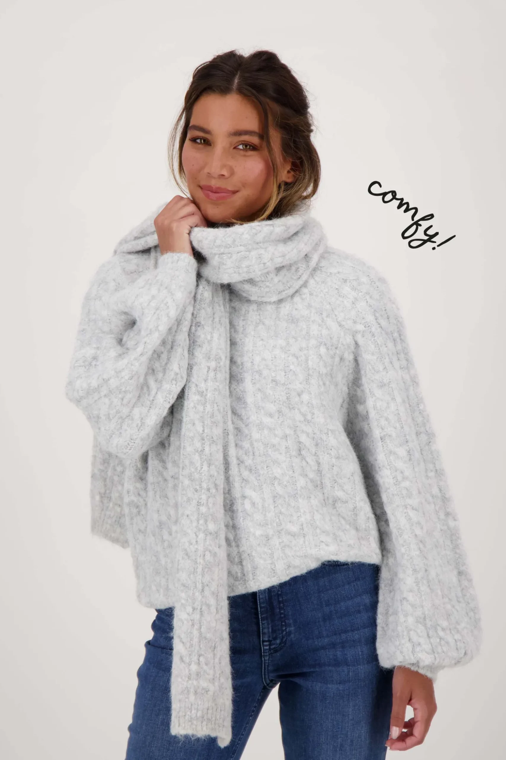 zusss sjaal met kabel lichtgrijs