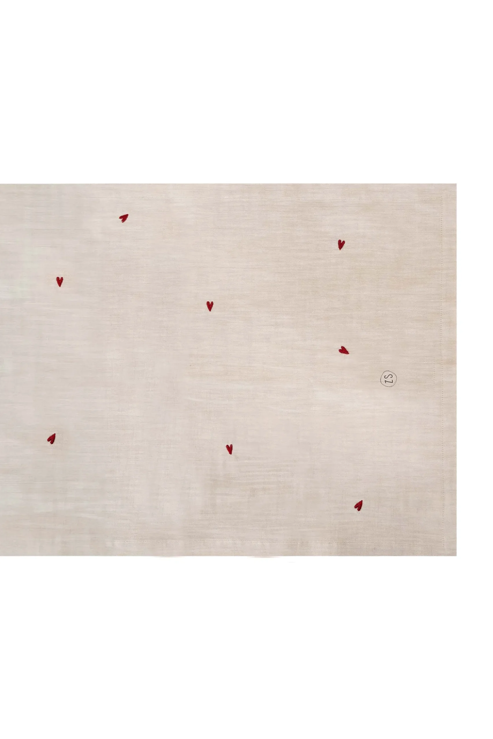 Zusss tafelloper hartjes zand/rood|Deze tafelloper van Zusss maakt een feestje van jouw tafel! De tafelloper is zandkleurig met daarop rode hartjes. Met mooi servies en Zusss servetten stijl jij de tafel helemaal af. Dit item heeft een formaat van 300x49cm. Tip: neem eens een kijkje bij het Zusss servies! |Zusss: basic, stoer, uniek en een tikkeltje eigenwijs.