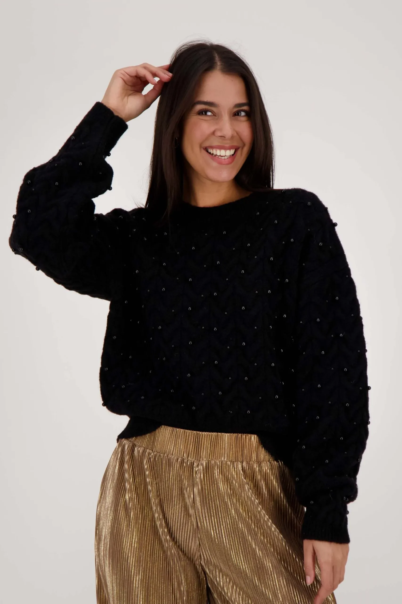 Zusss trui met kraaltjes|Jaa deze wil je hebben! Een zachtje Zusss trui is altijd fijn. Met deze zwarte trui kun je alle kanten op. Je draagt ‘m op een gekleurde broek, zwierige rok of jeans van Zusss. De kraaltjes op deze trui maken ‘m lekker uniek en speels. Deze leuke trui is gemaakt van 72% polyester, 9% acryl en 4% spandex. Kijk ook eens bij de Zusss mooimakersom je outfit af te maken.|Zusss: basic, stoer, uniek en een tikkeltje eigenwijs.