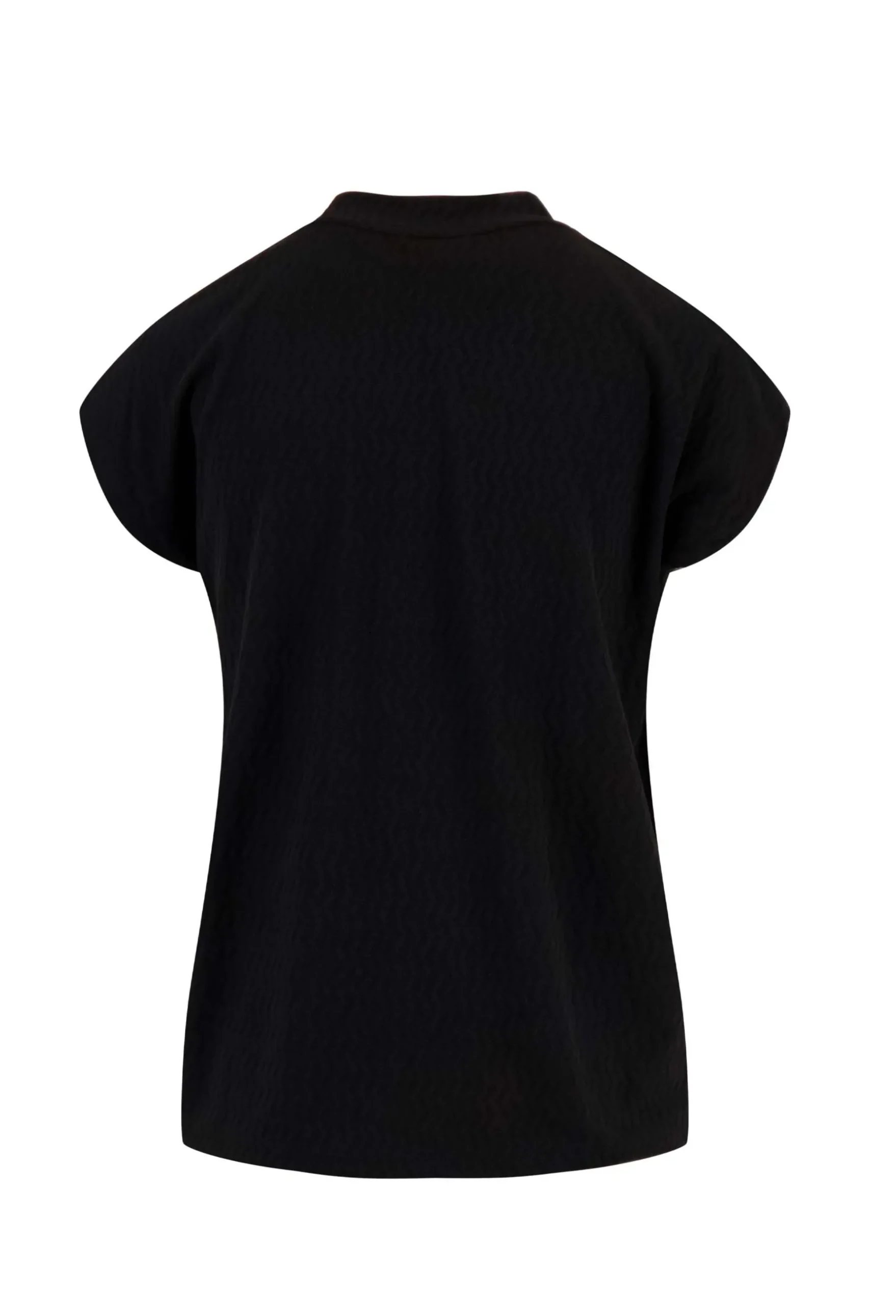Zusss turtle top met structuur zwart|Met de turtle top van Zusss kun je alle kanten op! Deze zwart kleurige top is te combineren met allerlei items. Je draagt ´m bijvoorbeeld op een fleurige Zusss broek of rok. De top heeft korte mouwen, een turtle hals en een structuur in de stof. Dit item is gemaakt van 93% polyester en 7% elastaan. Neem ook eens een kijkje bij de Zusss tassen. Welke tovert bij jou een glimlach op je gezicht?|Zusss: basic, stoer, uniek en een tikkeltje eigenwijs.