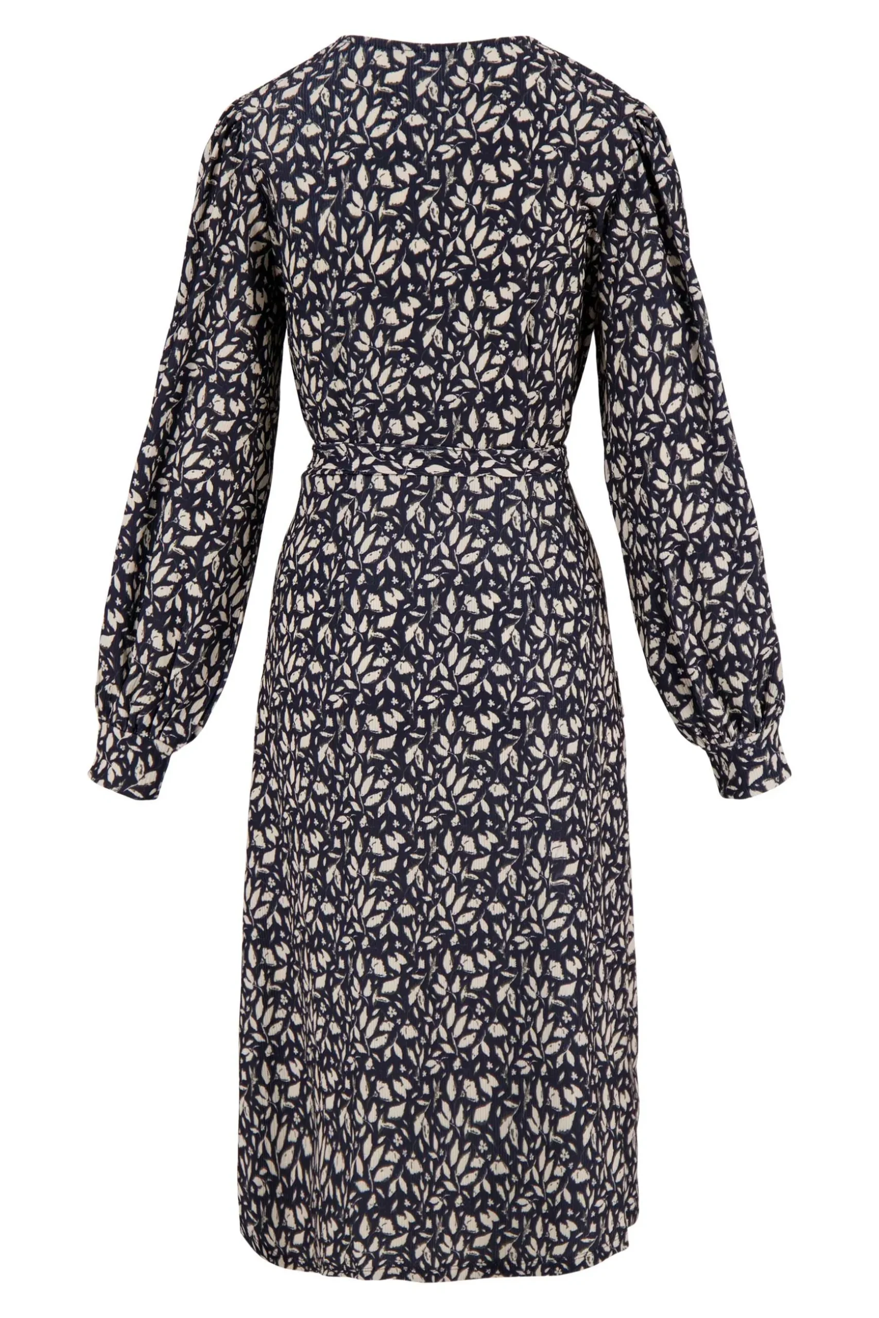 zusss wikkeljurk met blaadjesprint donkerblauw